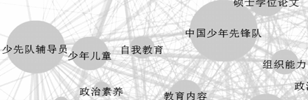 关键词是论文的核心和结晶,通过词频统计和CiteSpace共现分析,反映当前的研究热点。根据分析原则,节点代表关键词,其大小反映频次的高低,节点的连线反映两者之间的关系,连线的粗细反映彼此的关联程度。由图3可知,“中国少年先锋队”是图谱中最大的节点,它是少年儿童组织认同的具体组织体现;其次,“少先队辅导员”“少年儿童”“组织能力”“自我教育”较为突出,说明当前的研究热点主要集中于中国少年先锋队、少先队辅导员、少年儿童及组织能力。这些关键词都是组织中的核心元素,将个体、组织机构、领导方式、管理机制都囊括其中,也反映出组织认同研究的内容和趋势。