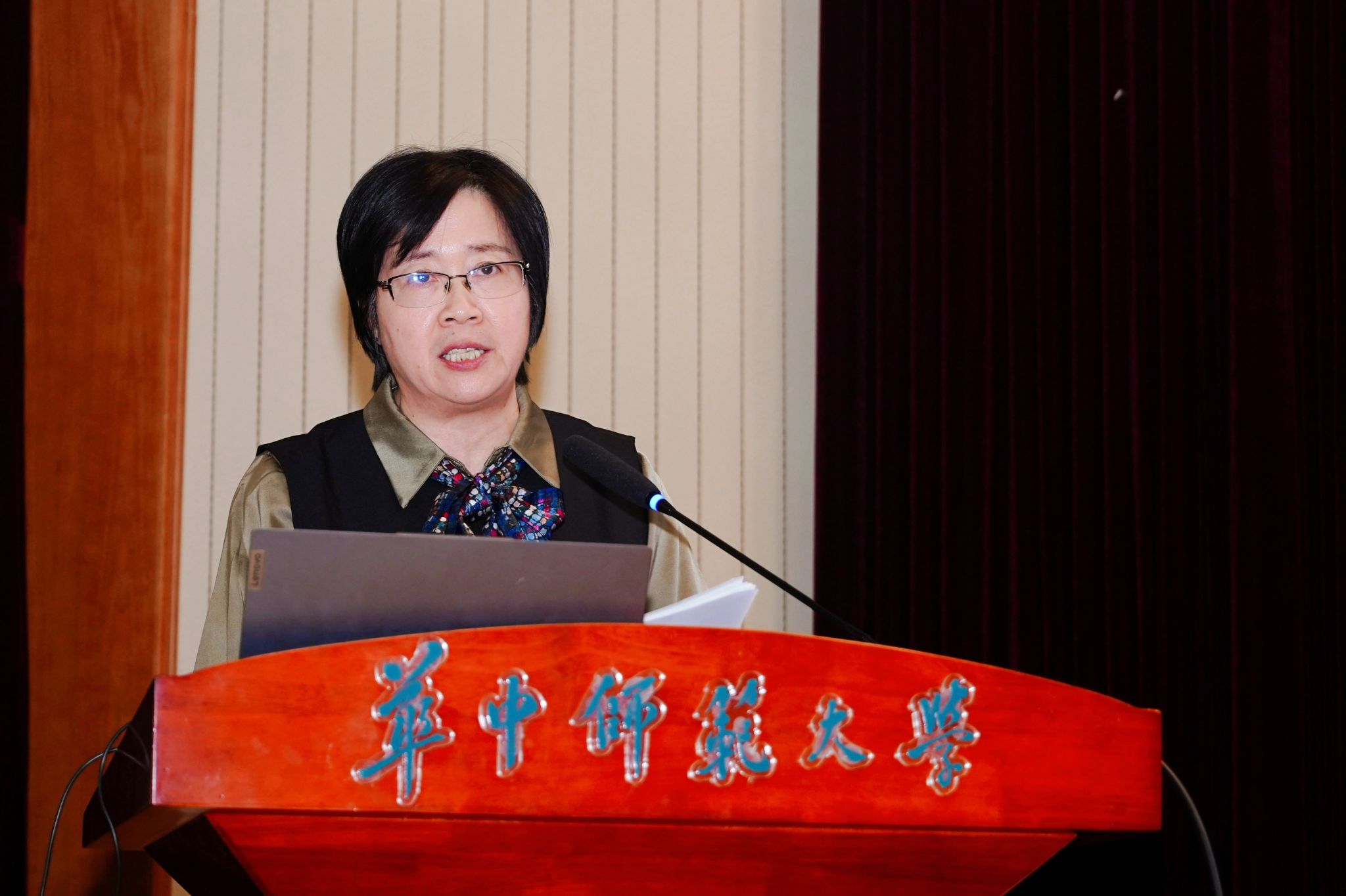 陈华教授以“破‘五维’与高校教师专业伦理的价值重构”为题展开报告。他从当前高校教师专业能力的现实困境引入,提出应该把论文写在祖国大地上,进而引领专业伦理的价值重构。