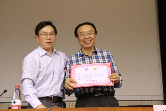 报告会接近尾声之时,华中师范大学道德教育研究所所长杜时忠教授作报告会总结。杜教授由衷赞扬了李先生是一位真人、真教师,此次报告会轻松却又深刻,让人感受到幸福与力量,杜教授代表华中师范大学道德教育研究所诚挚地邀请李镇西先生成为华中师大道德教育研究所兼职教授,期望得到更多向其学习探讨的机会。