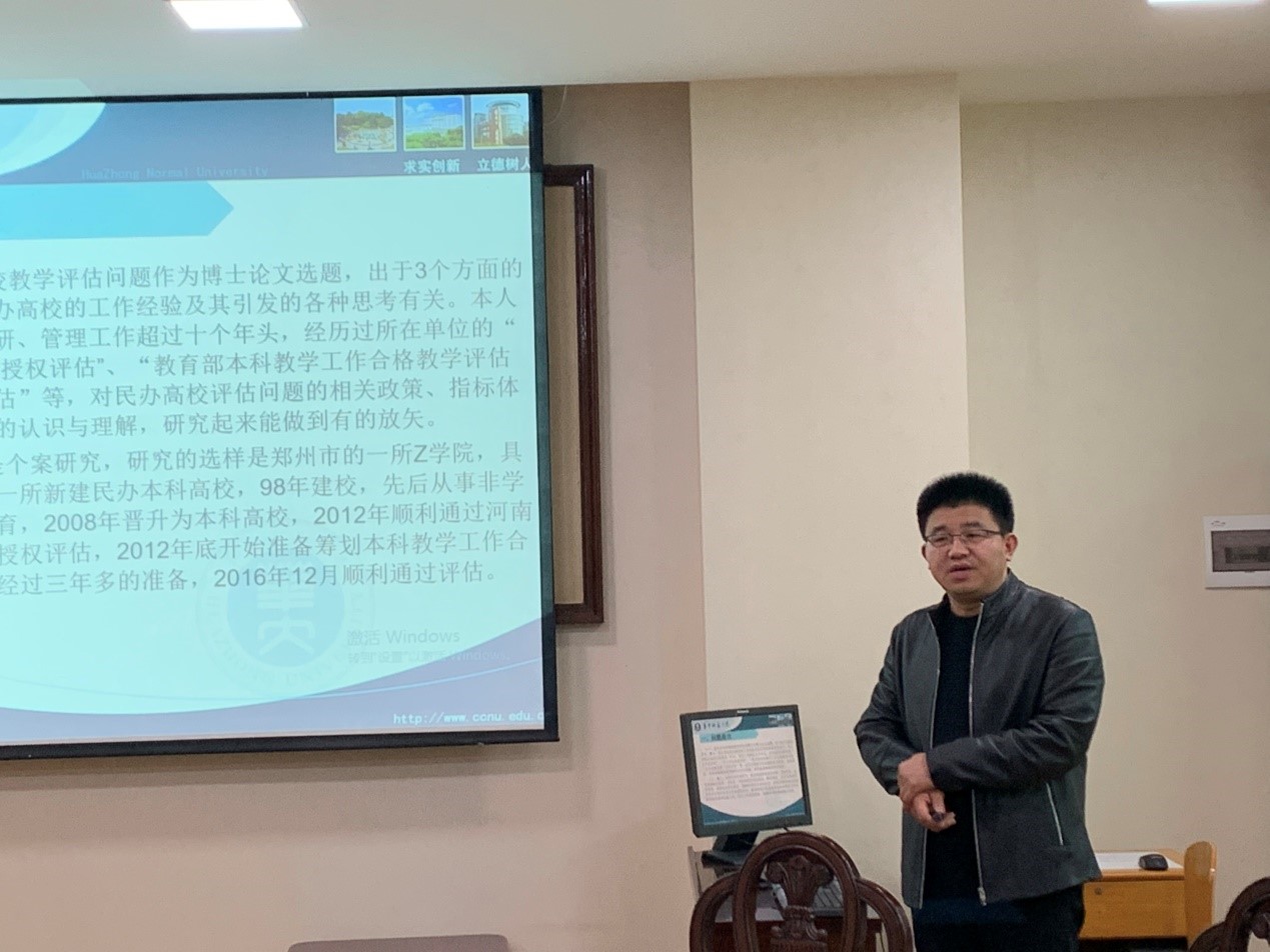 闫兵的博士答辩论文题目为《民办本科高校教学评估研究——以Z学院本科教学合格评估为例》。他以Z学院的本科合格评估为案例,指出现行合格评估在实施主体、指标体系设置、实施过程等方面的不足,进而构建民办本科合格评估指标体系,提出实施的改进策略。
