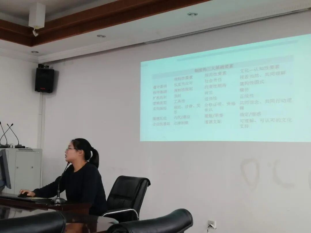 下半场,博士生罗艳华和硕士生史若琳协同做了《制度与组织》的读书汇报。