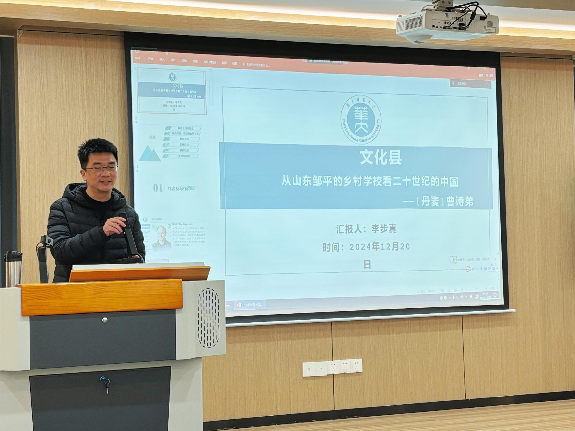 本期沙龙共有两项议程。一是博士生李步真分享《文化县——从山东邹平的乡村学校看二十世纪的中国》一书;二是交流讨论环节。