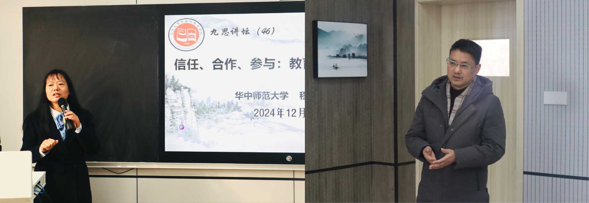 2024年12月20日,应三峡大学田家炳教育学院邀请,我所程红艳教授带领在读博士生、硕士生赴三峡大学田家炳教育学院开展学术交流。三峡大学位于湖北省宜昌市,办学规模大,综合实力较强,校园依山而建,环境优美。本次活动共有两个议程:一是开展国家社科项目申报交流,二是程红艳教授作题为《信任、合作、参与:教育改革的社会基础》的专题报告。