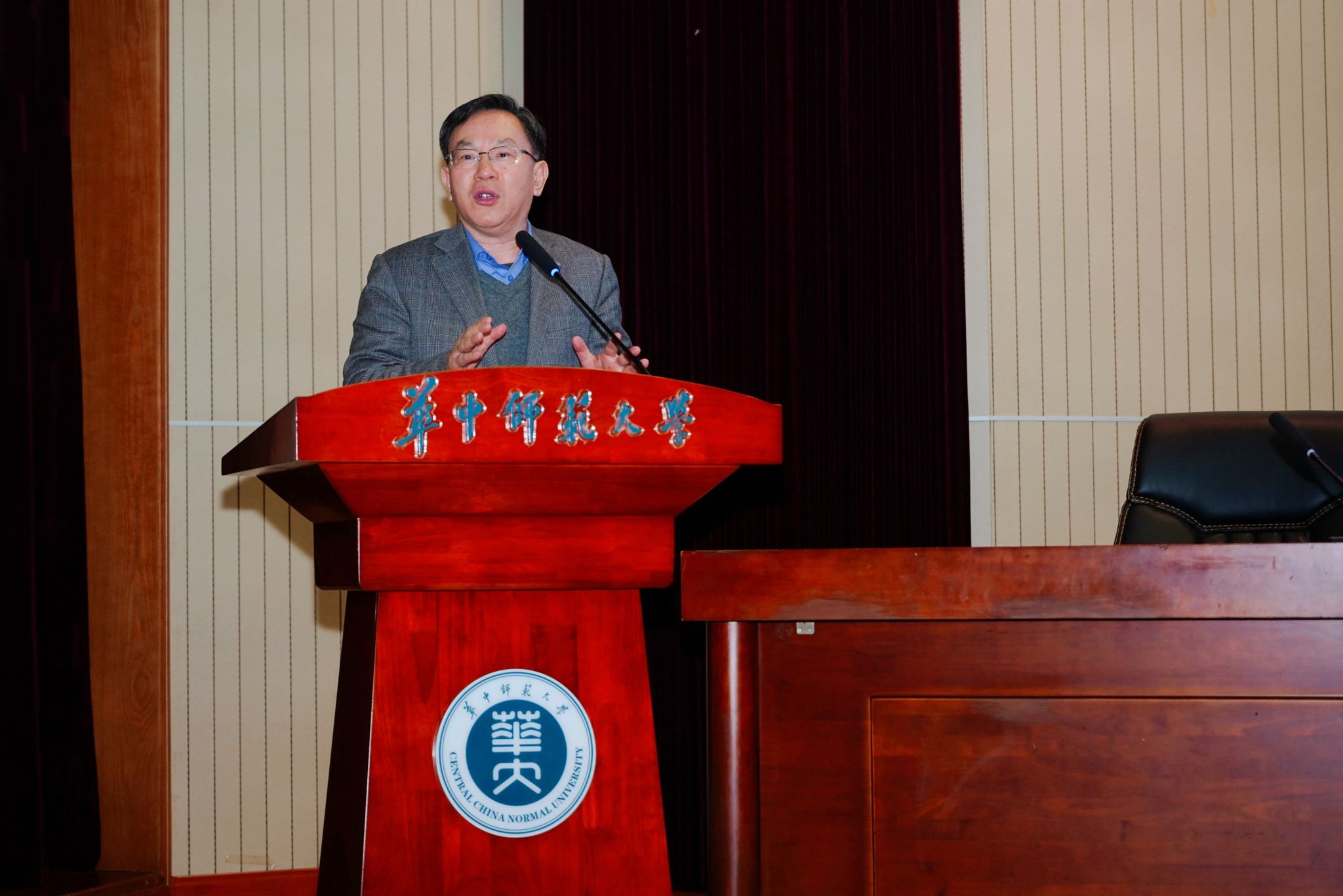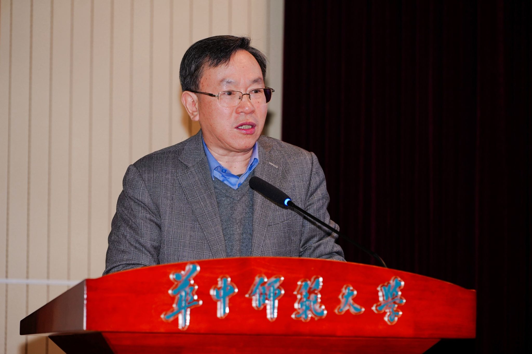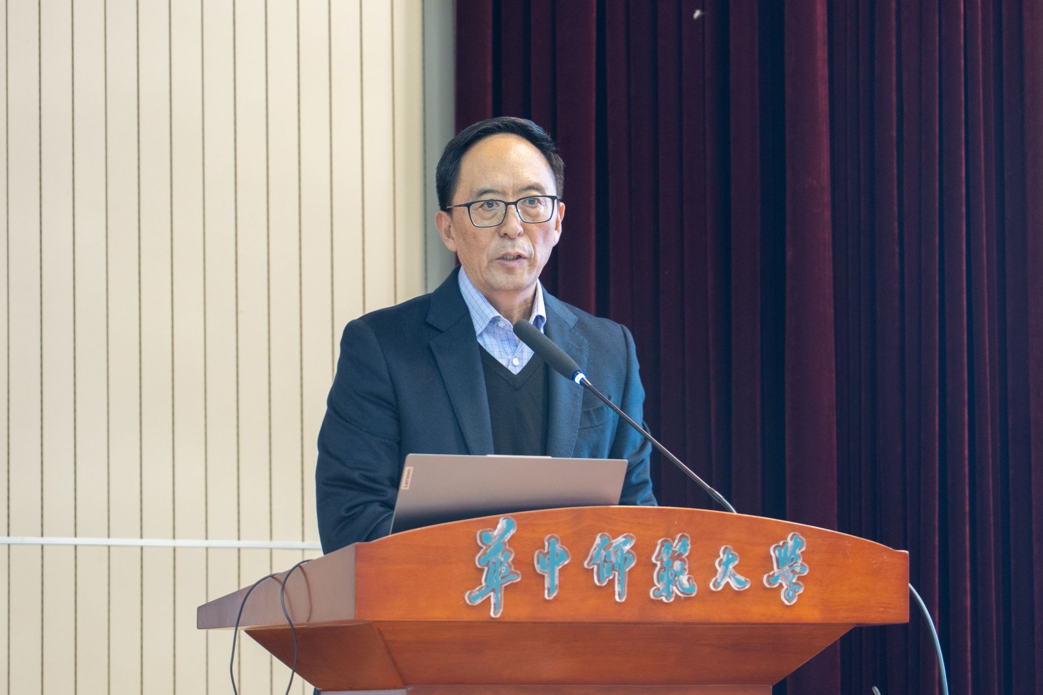 陈华教授以“破‘五维’与高校教师专业伦理的价值重构”为题展开报告。他从当前高校教师专业能力的现实困境引入,提出应该把论文写在祖国大地上,进而引领专业伦理的价值重构。