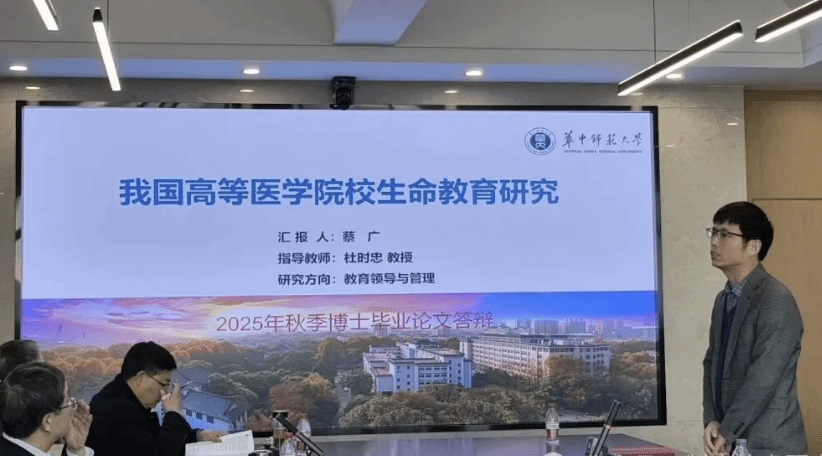 针对蔡广的博士论文,答辩委员会进行了评价与提问。涂艳国教授指出,可以在大标题下适当添加副标题;同时需深化对生命教育与专业医学教育二者间区别与内在关联的阐释;且马克思主义生命哲学相关论述需补充更为扎实的理论依据;最后应明确学生评分变化的可比性及相关论证逻辑。