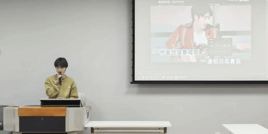 第一个节目是硕士生何展宏带来的歌曲《我们的歌》,在他的歌声中沙龙的氛围变得温暖而轻松。