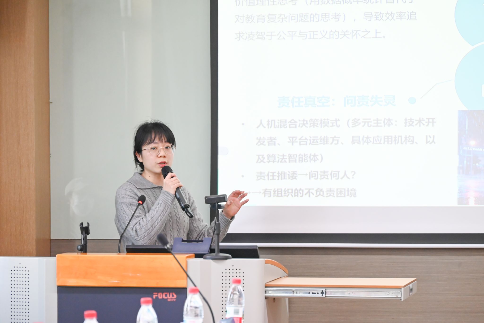 华中师范大学博士生王琇作了题为“算法正义及其教育意蕴”的报告。她提出,目前算法正逐渐成为具有结构性影响的工具,并深入研究了算法应用于教育实践中产生的种种不平等,指出算法需要兼顾透明可问责的程序正义与结果自由与平等的实质正义;在此基础上,提出教育需要以算法人文主义为价值引领重塑教育理念。