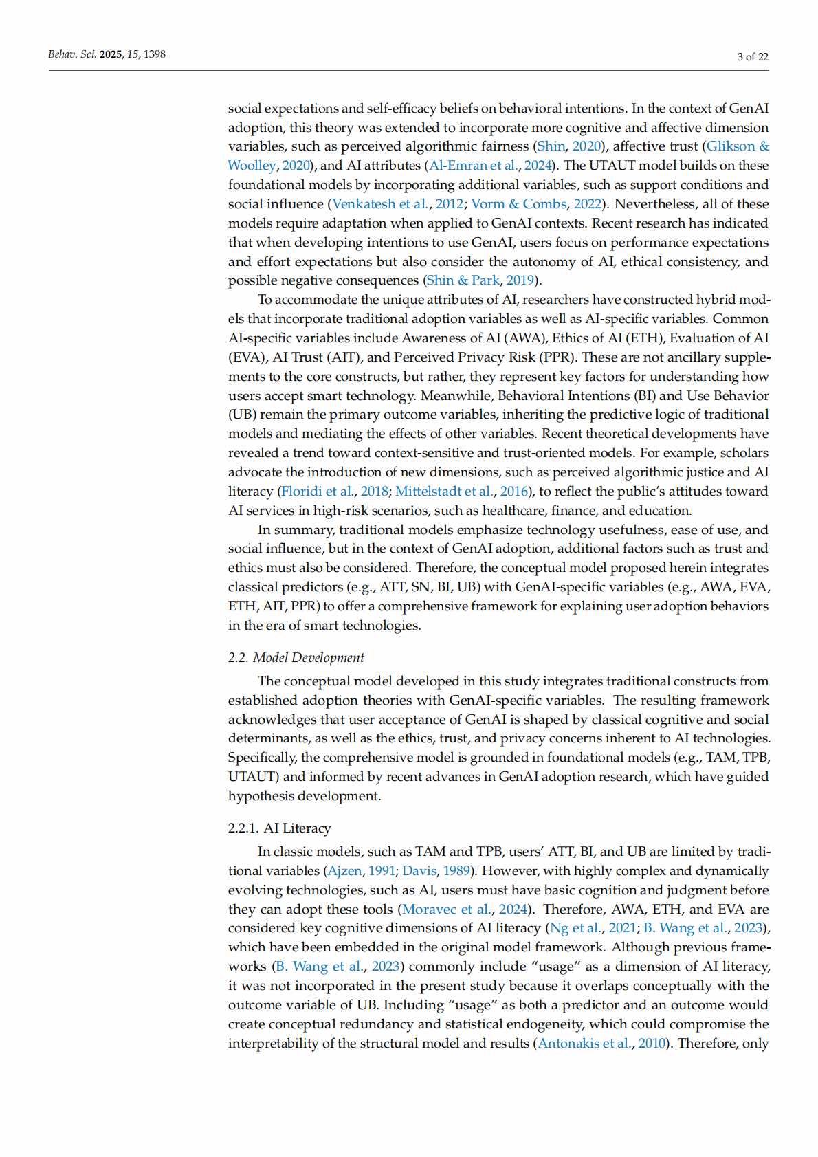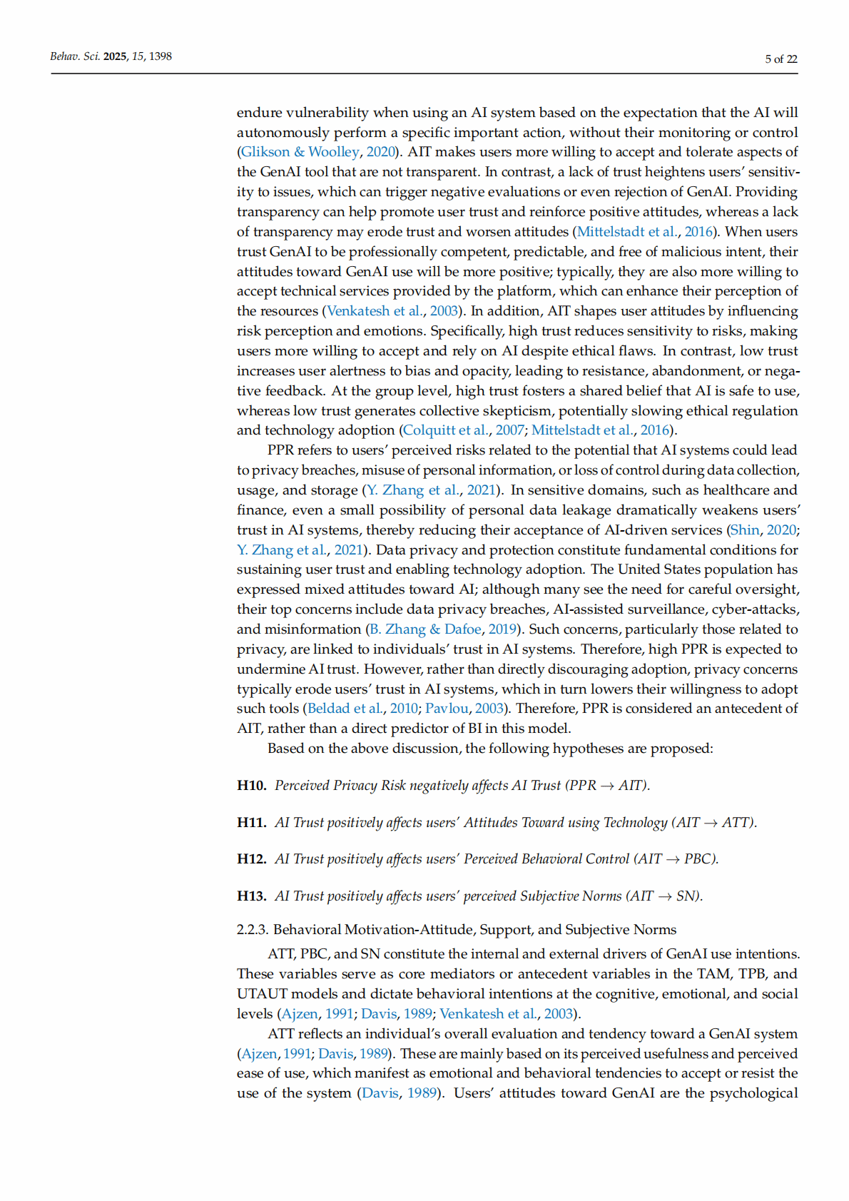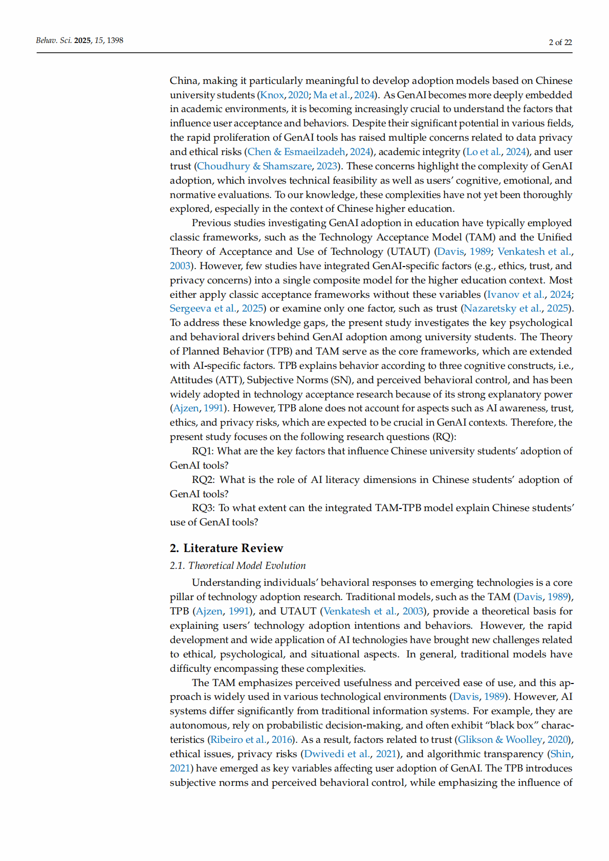 Keywords: generative artificial intelligence; AI literacy; technology acceptance; Theory of Planned Behavior; Technology Acceptance Model; privacy risk