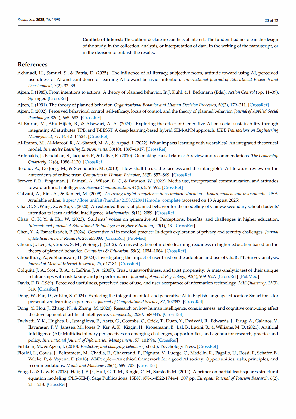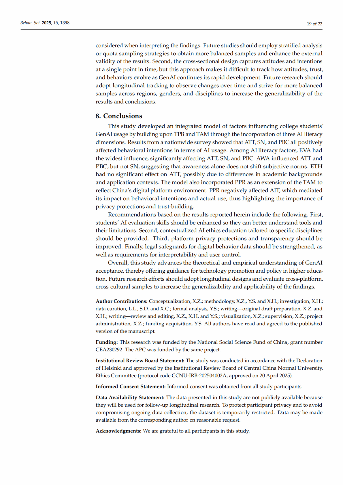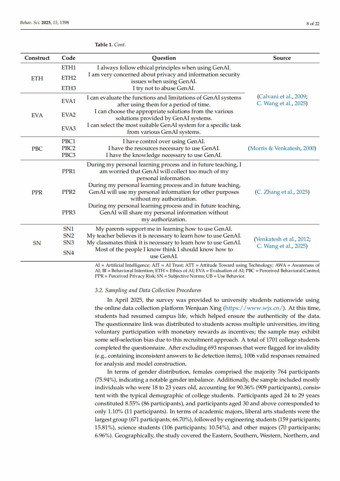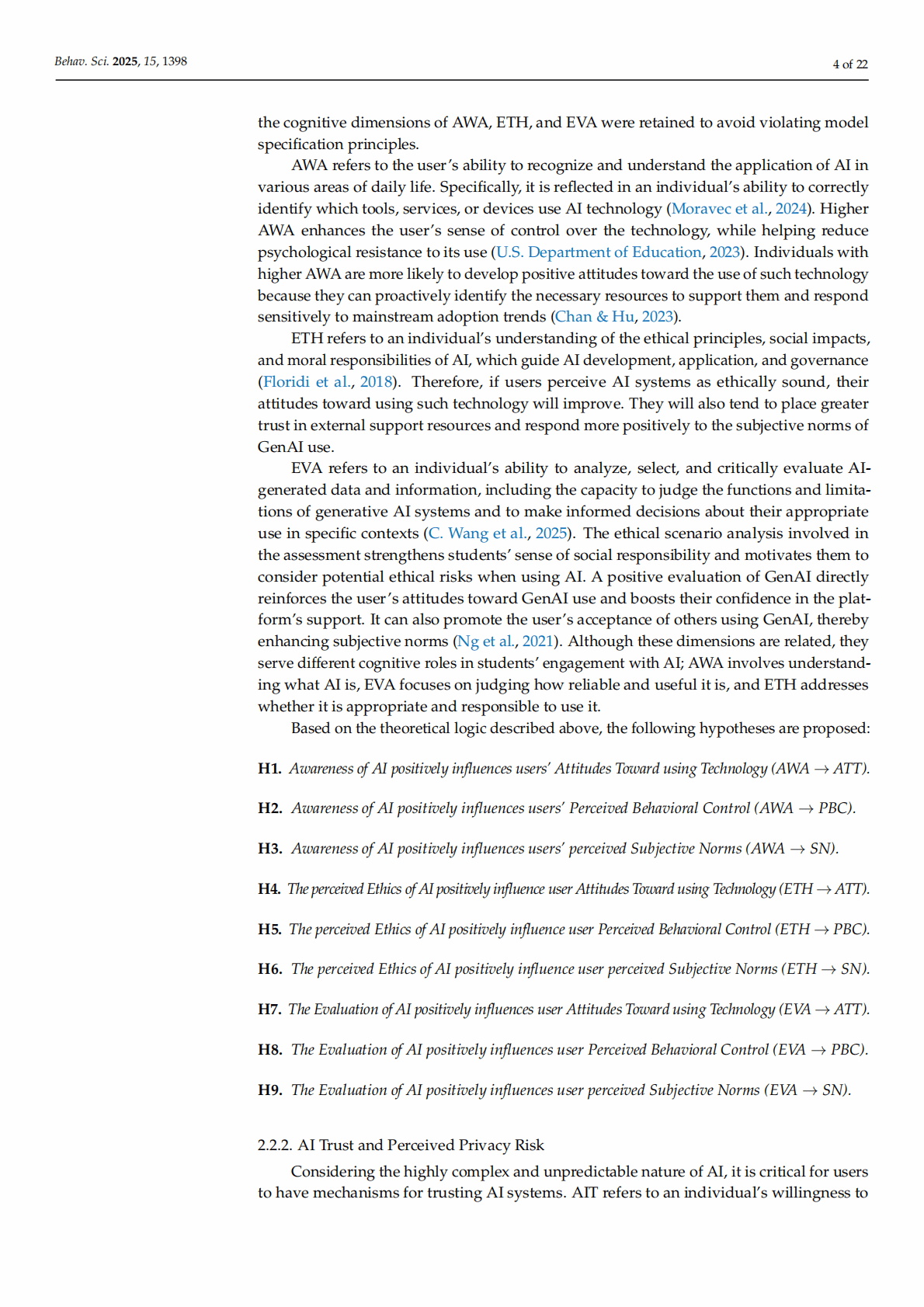 Keywords: generative artificial intelligence; AI literacy; technology acceptance; Theory of Planned Behavior; Technology Acceptance Model; privacy risk