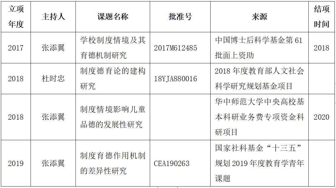表7-13 制度德育论之课题研究三(2017-2020年)