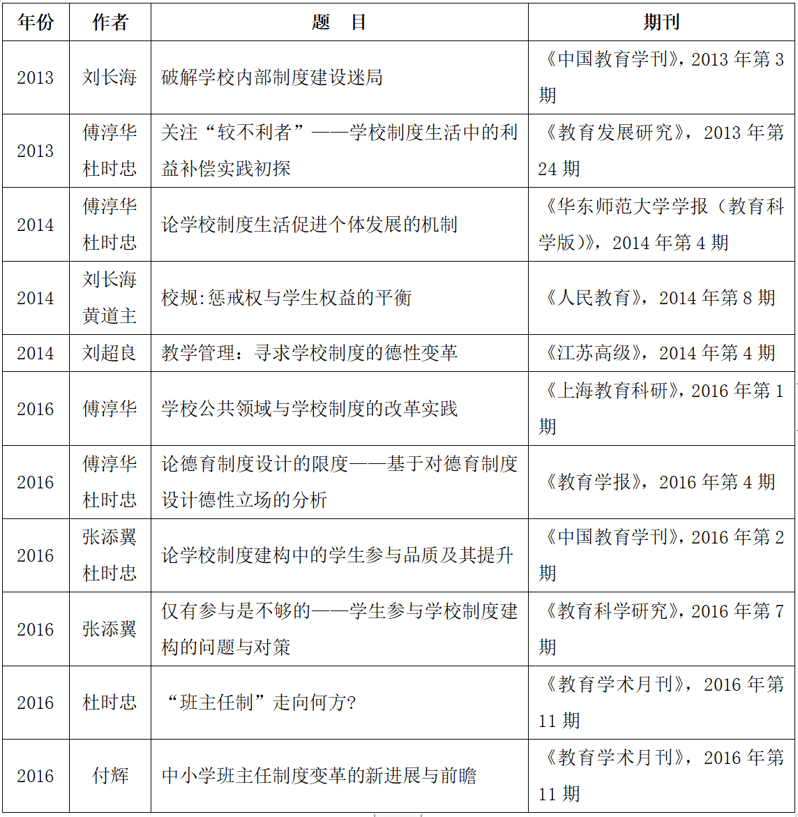表7-9 制度德育论研究成果之八:学校制度建构(2013-2016年)
