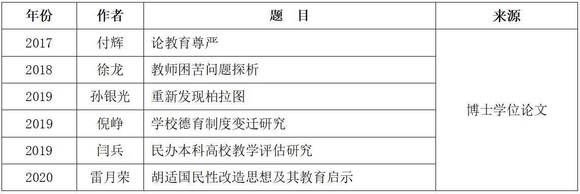 表7-16 制度德育论研究成果之十二:博士学位论文(2017-2020年)