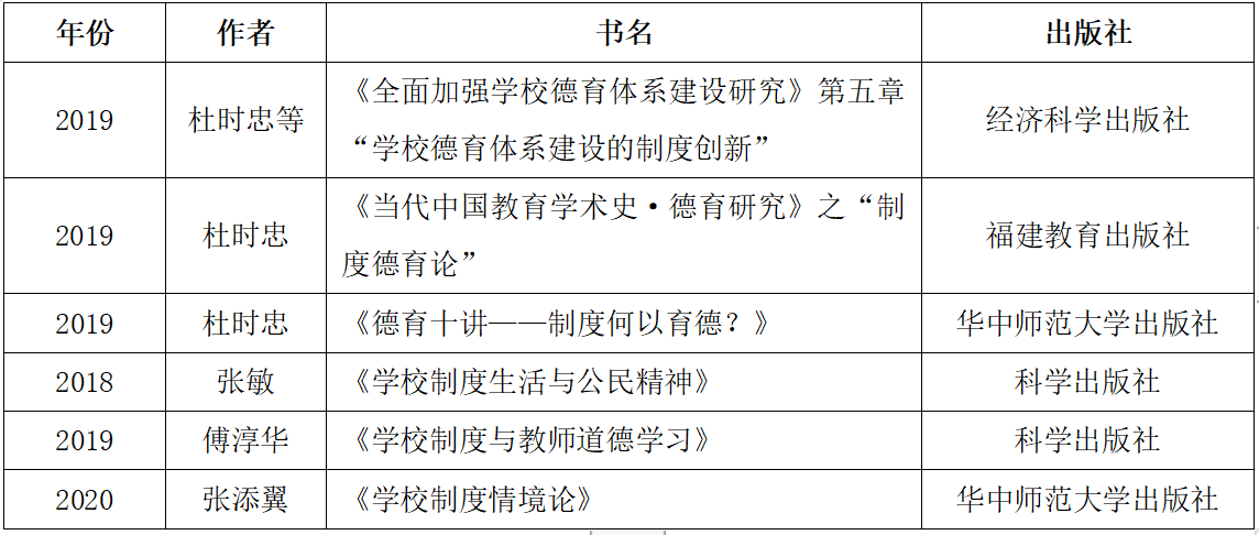 表7-15 制度德育论研究成果之十一:制度育德深化研究(2017-2020年)