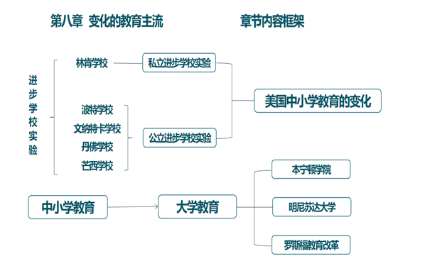 2、学校变革的主要内容,主要是从技术层、内容层进行的。变革的主体以学校、专家和民间社会团体为主。美国教育发展的基础,南北战争之后还是很落后的。在教学理念、技术、内容方面都比较落后。进步教育针对落后学校的改革,改革的成果都是不一样的。后面有了协会,有了理念,都是自下而上的。没有一套特别的系统、理念和方法。