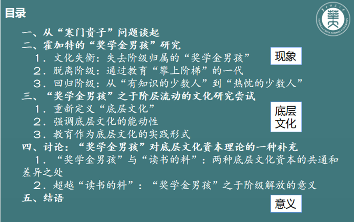 程老师:寒门贵子能吸引眼球,不是学术语言,某种程度抓眼球的,“你懂的”,不是谨慎的学术语言,但是有时候这个词出来迅速获得认同,约定俗成就这么用。