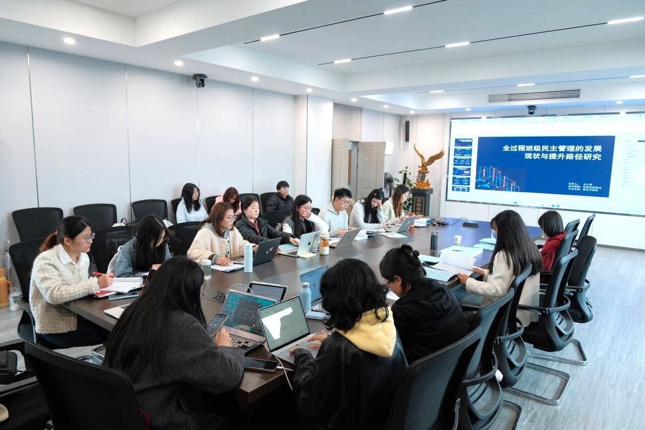 双小雨同学汇报的论文题目是《全过程班级民主管理的发展现状与提升路径研究》。她采用量化的研究方法,系统分析班级民主管理与学生公共参与现状,对存在问题进行深度归因,揭示制约全过程班级民主管理的深层逻辑。程红艳教授肯定其研究扎实、调研规范,建议补充关键词数量,摒弃刻意对仗表述,将“公共领域”调整为更贴合班级场景的“共享空间”。李芳老师指出流程图可以提高清晰度,完善人口学的相关信息,理论的三维框架可以更好地融入进论述中。张添翼副教授建议斟酌论文题目措辞,理顺理论基础的位置与作用,规范探索性与验证性因子分析顺序