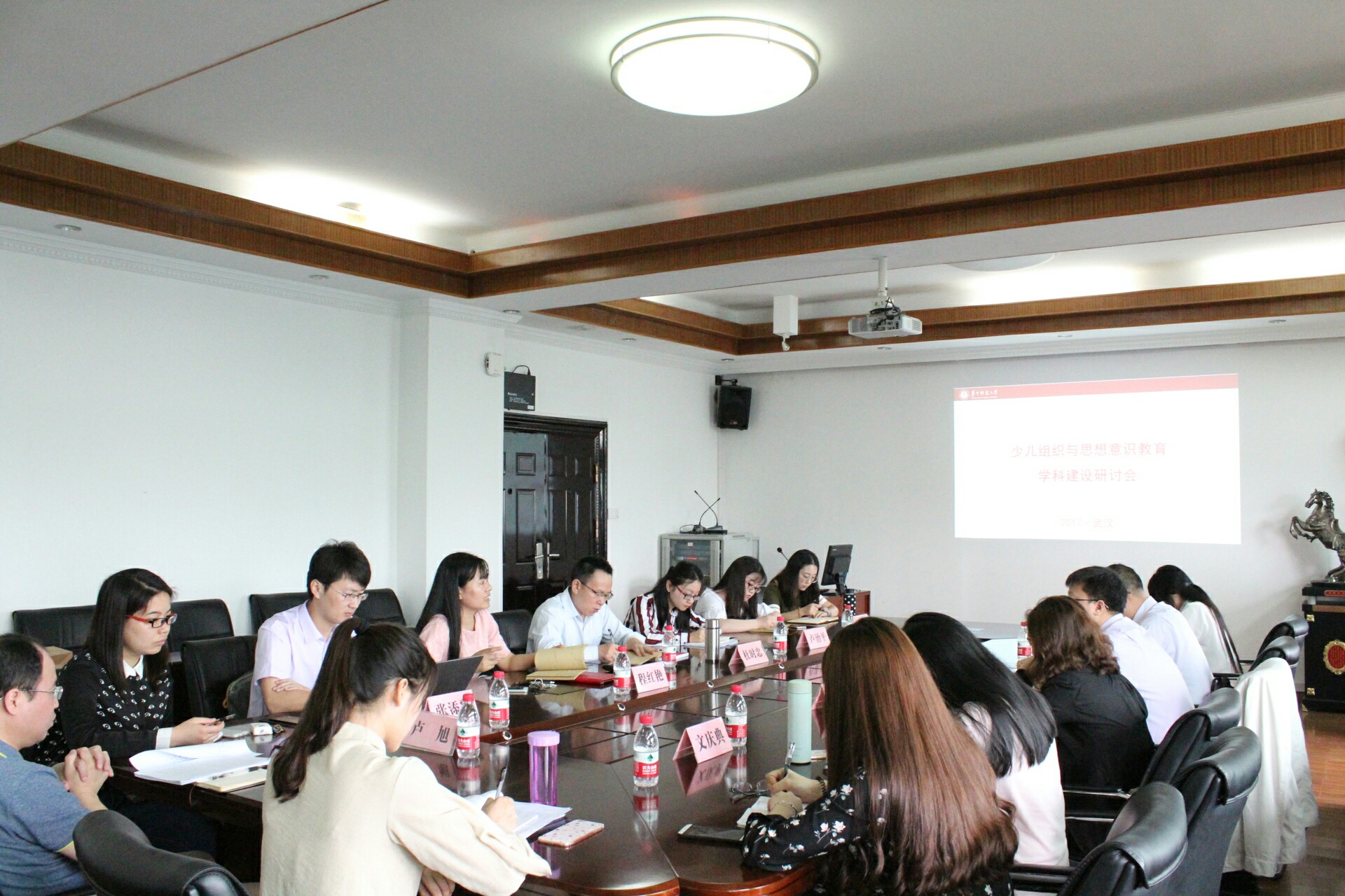 随后,与会人员围绕师资队伍、专业设置、课程安排、学术刊物、就业等方面进行了深入的讨论与交流。教育学院党委书记卢治平、副院长申国昌先后表达了学院支持基地的决心与措施。程红艳教授、张添翼博士、卢旭博士相继分享了学科建设方面的经验,并提出了遇到的困难。八位少儿组织硕士研究生汇报了自己的学习情况,以及对专业发展的信心。