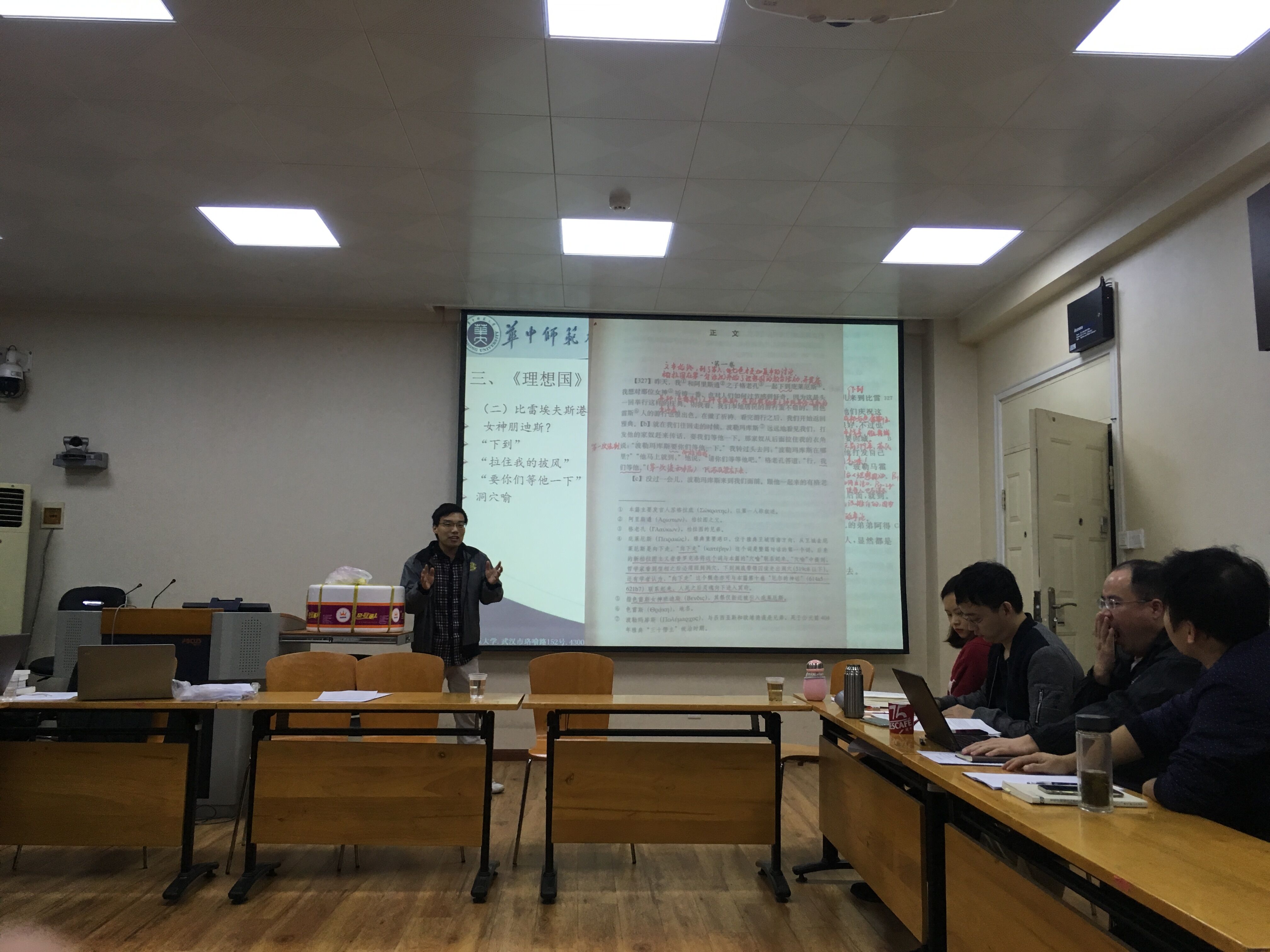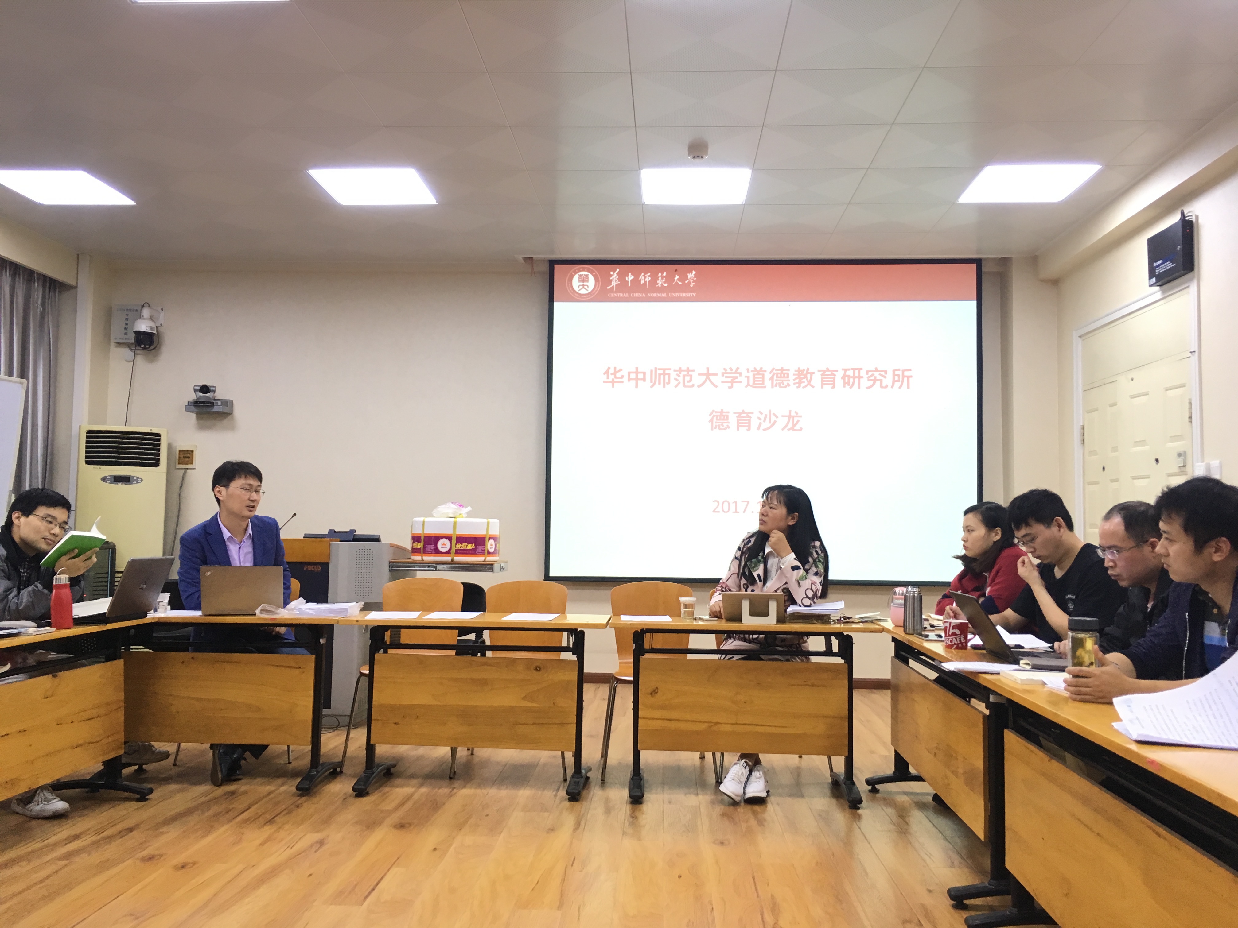 2017年10月11日下午,华中师范大学道德教育研究所2017-2018学年第四期德育沙龙在田家炳502室顺利举办。本次沙龙分为两个主题:第一个部分以“儿童游戏的德育功能探究”为主题,由陈银河博士做报告;第二个部分是孙银光博士关于《理想国》的读书分享。杜时忠教授、程红艳教授、卢旭副教授、张添翼老师以及德育所硕博研究生参加了此次沙龙。沙龙由硕士生杨腾辉主持。