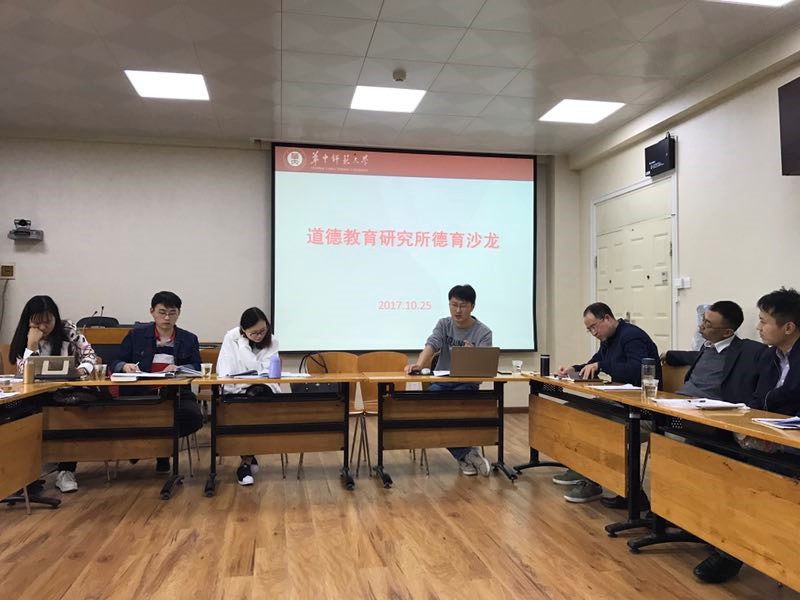 2017年10月25日下午,华中师范大学道德教育研究所2017-2018学年第六期德育沙龙在田家炳502室顺利开展。本次沙龙以“《民主在教育中的作用与局限》论文大纲的探讨”为主题,由周金山博士做相关研究成果汇报,并以自己的两篇文章,《教育民主视野下的教师专业主义走向》和《教师“学科知识本位”:释义与解构》为话题引线与大家相互探讨学习。程红艳教授、卢旭副教授、张添翼老师以及德育所硕博研究生参加了此次沙龙。本次沙龙由硕士生陈诚主持。