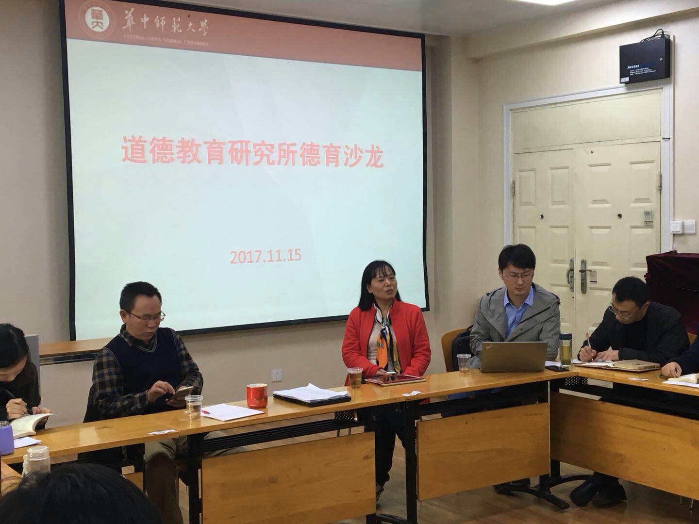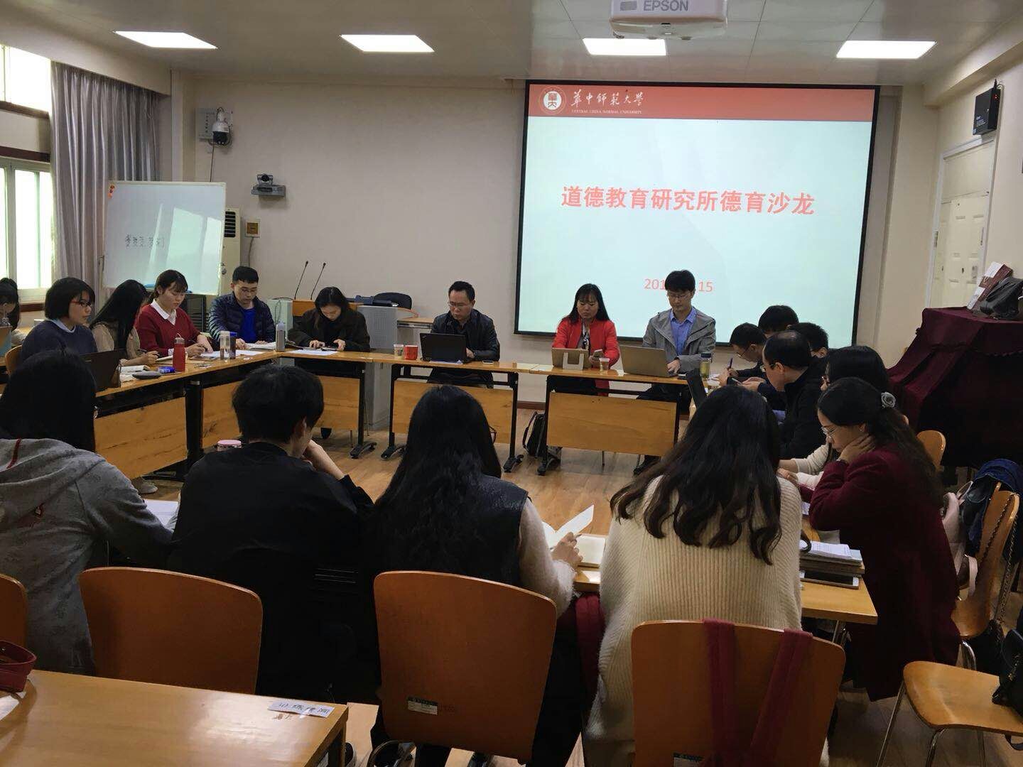 2017年11月15日下午,华中师范大学道德教育研究所2017-2018学年第九期德育沙龙在田家炳楼502室顺利举办。本次沙龙主要是硕士一年级教育学原理专业的同学分享自己的读书感想,主题分别是: