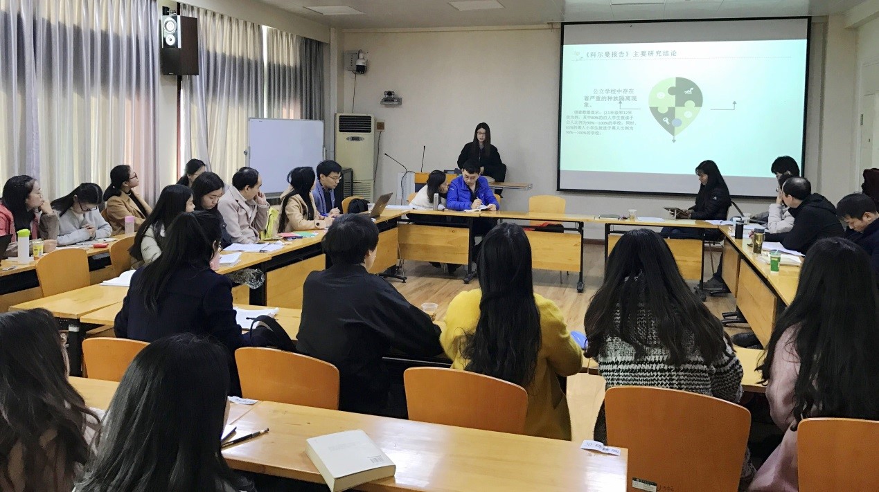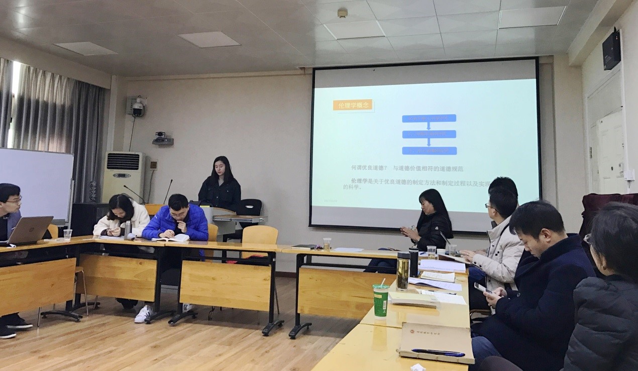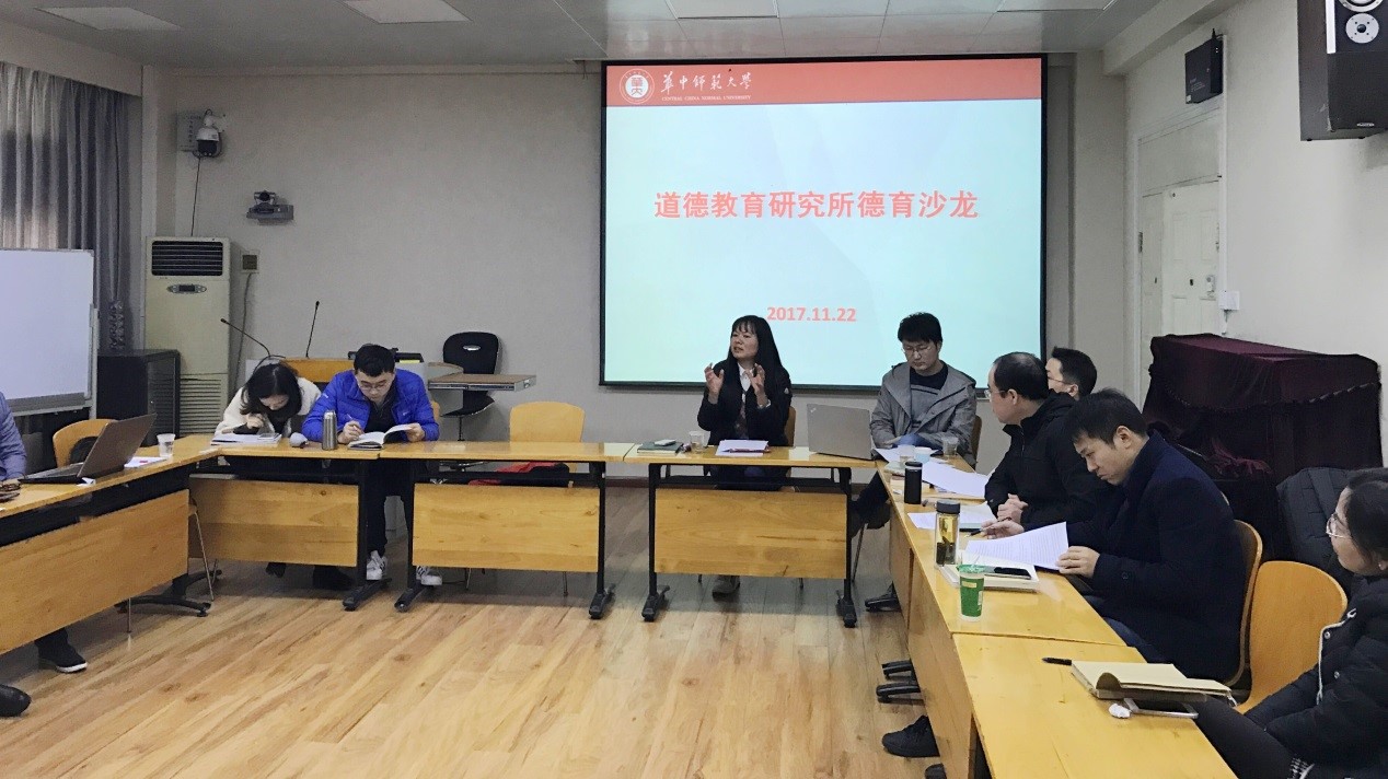 2017年11月22日下午,华中师范大学道德教育研究所2017-2018学年第十期学术沙龙在田家炳502教室顺利举办。本次沙龙由一年级少儿专业的四位同学进行读书分享。程红艳教授、卢旭副教授、华科教科院李伟副教授、张添翼老师以及德育所硕博研究生参加了此次沙龙。本次沙龙由硕士生游子慧主持。