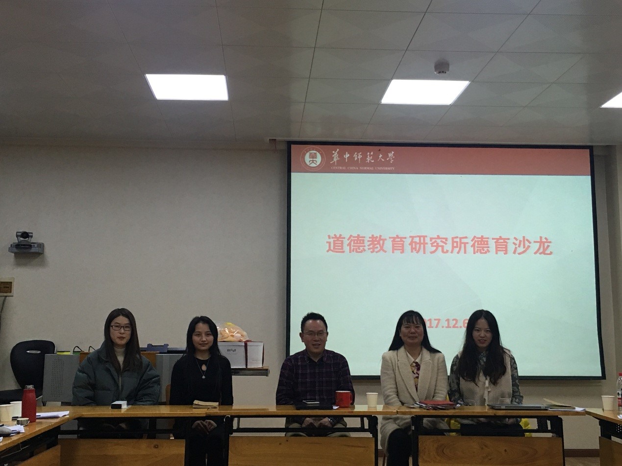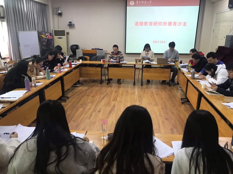2017年12月6日下午,华中师范大学道德教育研究所2017-2018学年第十二期学术沙龙在田家炳502教室顺利举办。本次沙龙的主题分为研二少年儿童组织与思想意识教育方向的四位同学的研究成果分享、孙银光博士讲解论文规范、为12月份过生日的师生庆生三个部分。杜时忠教授、程红艳教授、卢旭副教授、张添翼老师以及德育所硕博研究生参加了此次沙龙。本次沙龙由研一学生温悦彤主持。
