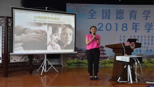 北京师范大学林可博士以“青少年网络公民参与的德育启示”为主题作了汇报,她以互联网为切入点,为大家呈现了德育研究的新领域,并提出互联网思维、新媒体对公民道德素养的建构提供了新的场域,并阐述了在此场域内道德思维的形成机制。