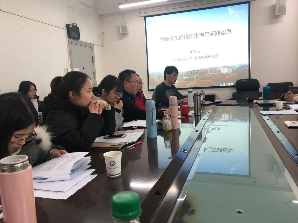 关于季轩民的选题及研究计划,卢旭副教授认为就良知谈良知还不够,更要有理性、批判与反思的意识。张添翼老师建议深入分析良知与良心、教师良知和教师道德、良知与道德这几组概念的关系以及它们的区别,并考虑环境因素对教师良知的影响。程红艳教授肯定了选题的当代价值,提出要界定良知的概念,在研究问题方面,要考虑教育良知与个人早年形成的良知之间的关系,并对其文本写作方面提出了要求与修改建议。在座的其他学生也提出了建议或困惑。