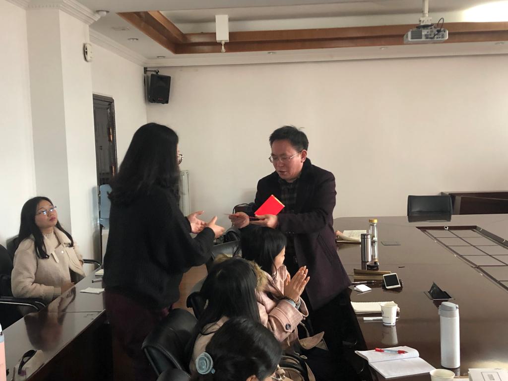 交流完毕,杜时忠教授为博士生孙银光、雷月荣与硕士生陈诚颁发德育所奖学金,同时向大家提出希冀,望同学们在新的一学期,努力学习、不断进步,向获奖的同学看齐。随后,杜时忠教授为德育所一、二、三月份生日的同学赠送生日礼物。新学期的首次沙龙便在这轻松而喜悦的氛围中结束。