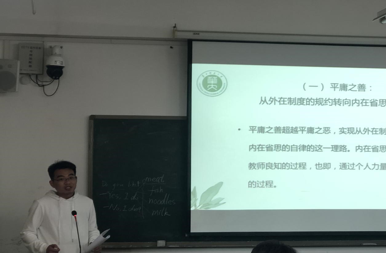 沙龙第二部分由博士生季轩民汇报论文《现代诠释:教师改革中教师良知的复归与实践》。汇报的主体由三部分组成,即教育改革中教师良知的遗失现状、教育改革中教育良知的复归缘由以及教育改革中教师良知的实践策略。