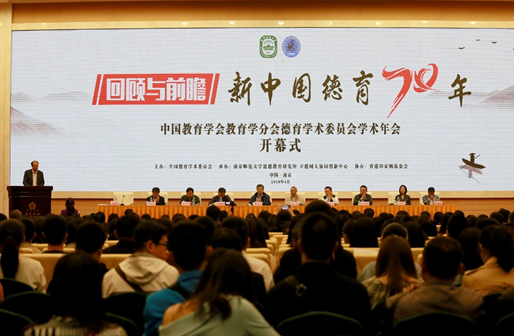 2019年4月20—21日,全国德育学术年会在南京隆重召开。本届年会以“回顾与前瞻:新中国德育70年”为主题,会议由全国德育学术委员会主办、南京师范大学道德教育研究所及立德树人协同创新中心承办、香港田家炳基金会协办。南京师范大学副校长缪建东教授,南京师范大学教育科学学院院长顾建军教授,全国德育学术委员会名誉理事长班华教授,全国德育学术委员会理事长檀传宝教授,副理事长杜时忠教授、易连云教授、黄向阳博士、高德胜教授、孙彩平教授,全国德育学术委员会秘书长班建武博士等来自全国各地的500余名德育理论和实践领域的专家学者出席了会议。