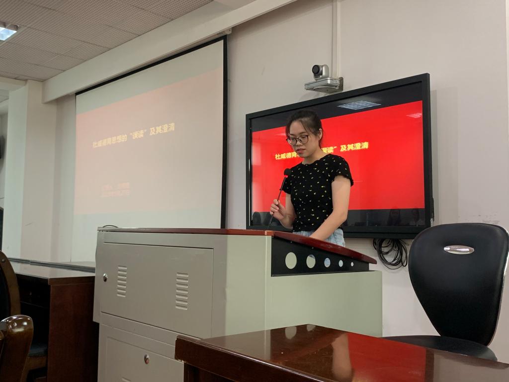 沙龙的第三部分由博士生沈艳艳汇报论文《杜威德育思想的“误读”及其澄清》。论文以“杜威是平衡论者”为中心论点,从三方面展开了论述,即学术界对杜威思想的“共识”、对其思想的“误读”以及“误读”原因。