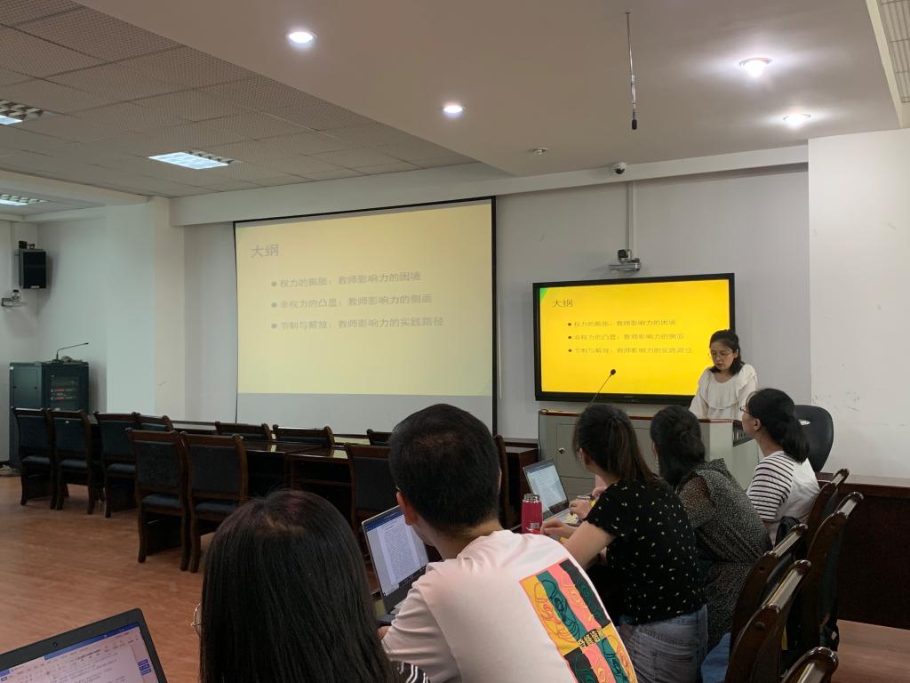 沙龙第一部分由博士生孙永敏汇报论文《从权力到非权力:教师影响力的实践路径》。汇报主题由三部分组成,即教师影响力的困境、教师非权力影响力的价值和教师影响力的实践路径。