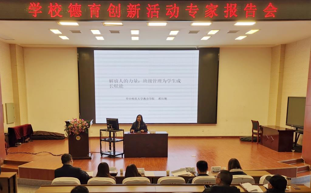 程红艳教授首先做了以《解放人的力量:班级管理为学生成长赋能》为题的演讲。程红艳教授从对当前标准化、唯升学、唯分数现象的批判入手,指出学校变革的合理性与迫切性。将寻找激发教师、学生的工作与学习动力为变革关键,分析对比同质竞争、双人竞争、抱团竞争、制度合作与生活共同体五种“班级管理”类型,指出以嵌入班主任个性化关怀,实现师生间心灵相通的生活共同体式班级管理形态的优越性与可行性。