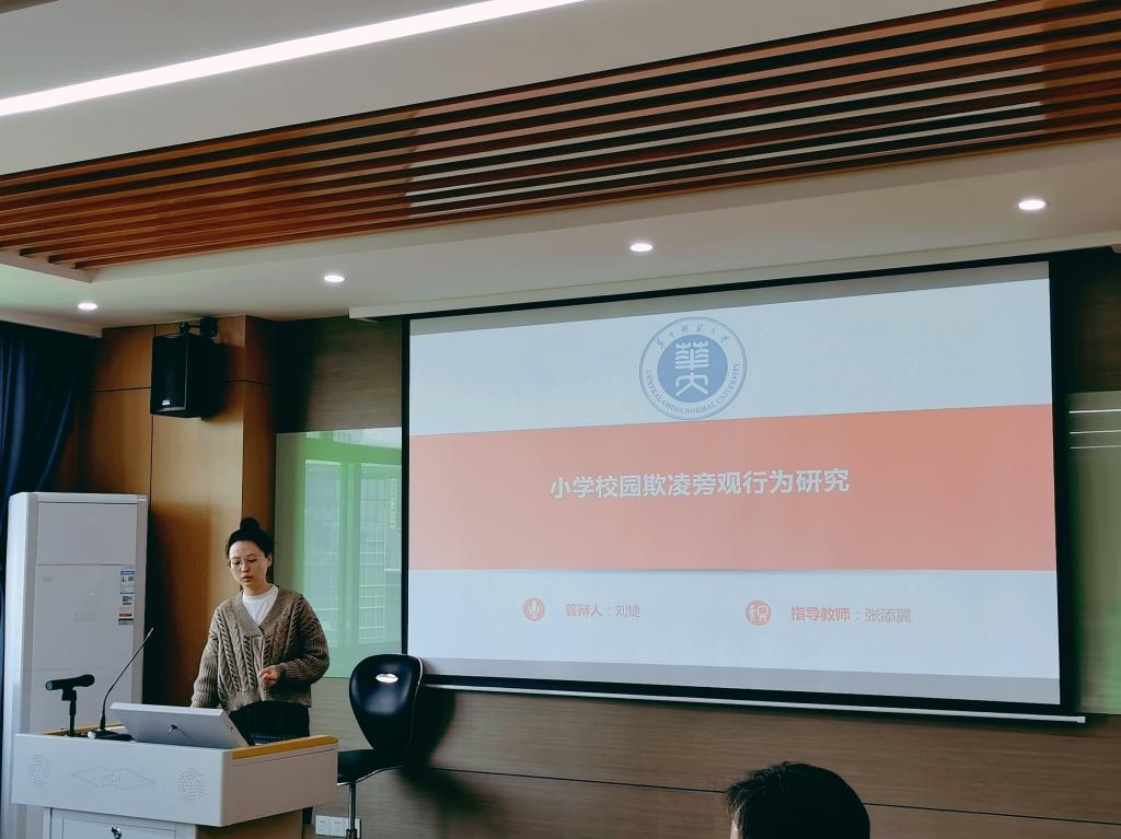 刘婕以《小学校园欺凌旁观行为研究》为题,从校园欺凌旁观行为的界定、出现的原因分析并提出建议。程红艳教授建议进一步描述清楚事实,如旁观的完整情景描述等。卢旭副教授认为工作量有些不足,建议增强文章的论证逻辑,对访谈文本进一步深入分析,以便将定义与现象结合起来。