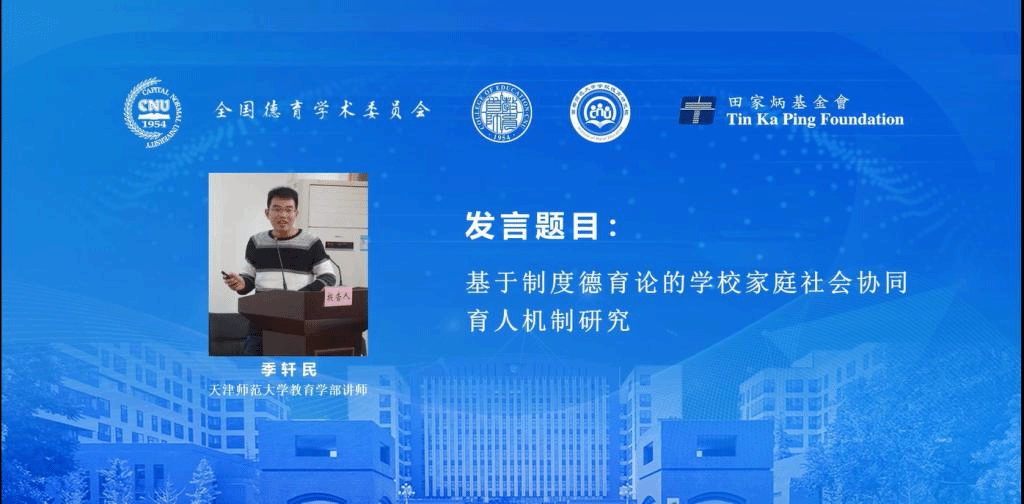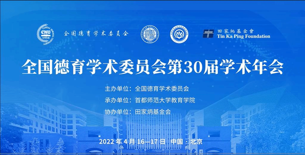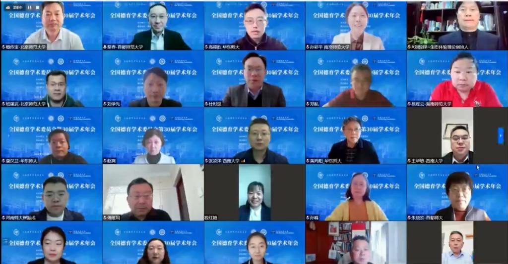 2022年4月16-17日,第30届全国德育学术年会在线上召开,主题为“时代特征与德育走向”。年会由全国德育学术委员会主办、首都师范大学教育学院承办、田家炳基金会协办。首都师范大学党委书记孟繁华教授,首都师范大学教育学院院长蔡春教授,全国德育学术委员会理事长檀传宝教授、副理事长杜时忠教授,易连云教授、孙彩平教授等来自全国各地的上百位德育理论和实践领域的专家学者出席本次会议。其中,华中师范大学道德教育研究所所长杜时忠教授,副所长程红艳教授、刘长海教授,研究员张添翼副教授、倪峥副教授、孙银光博士、周金山博士和季轩民博士作主题汇报,道德教育研究所全体硕博生参与学习交流。