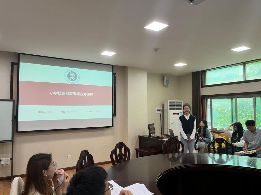 针对刘婕的硕士论文,答辩委员会对其论文内容进行了评价与提问。孙银光博士指出答辩人要进一步明确校园欺凌旁观行为与道德情感冷漠行为间的关系,说明不同年龄段小学生校园欺凌旁观者的特点及其指导要点。卢旭副教授提出儿童在校园欺凌中如何自处的问题。杜时忠教授就小学校园欺凌旁观者的特性,以及小学校园欺凌旁观行为出现的情境提出了自己的疑惑。周小李教授指出研究可以进一步关注校园欺凌行为出现的时间、地点。刘长海教授认为研究中的校园欺凌旁观行为缺乏操作性界定,他建议答辩人以校园欺凌旁观者的行为为研究对象。