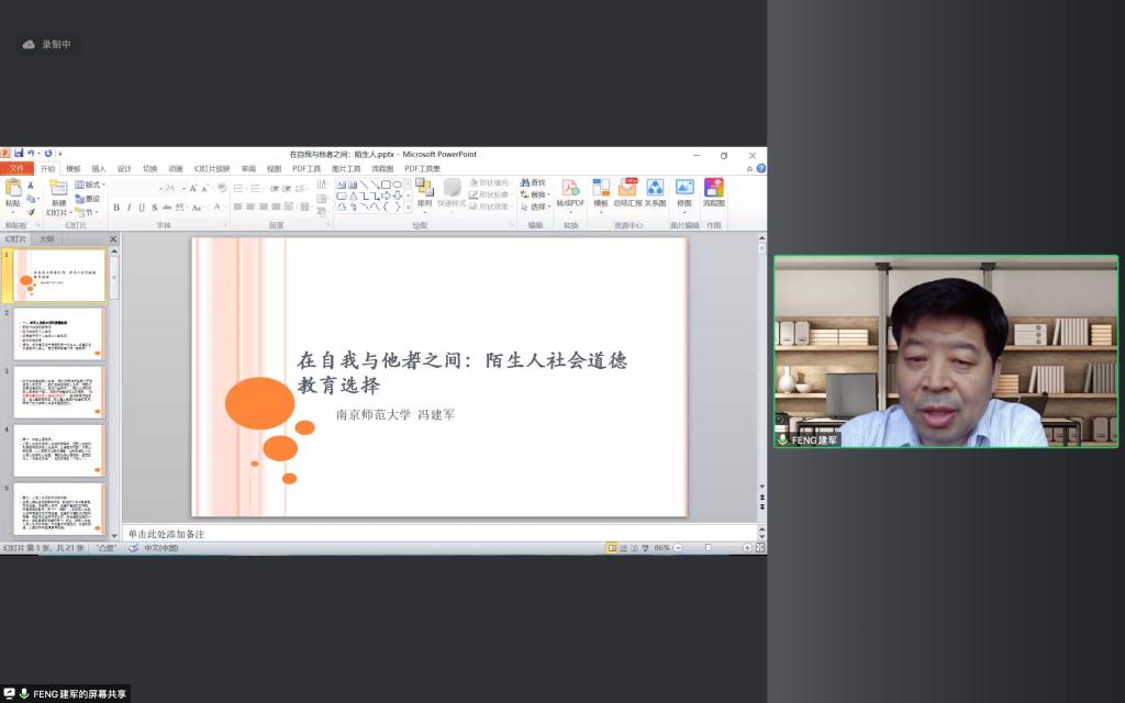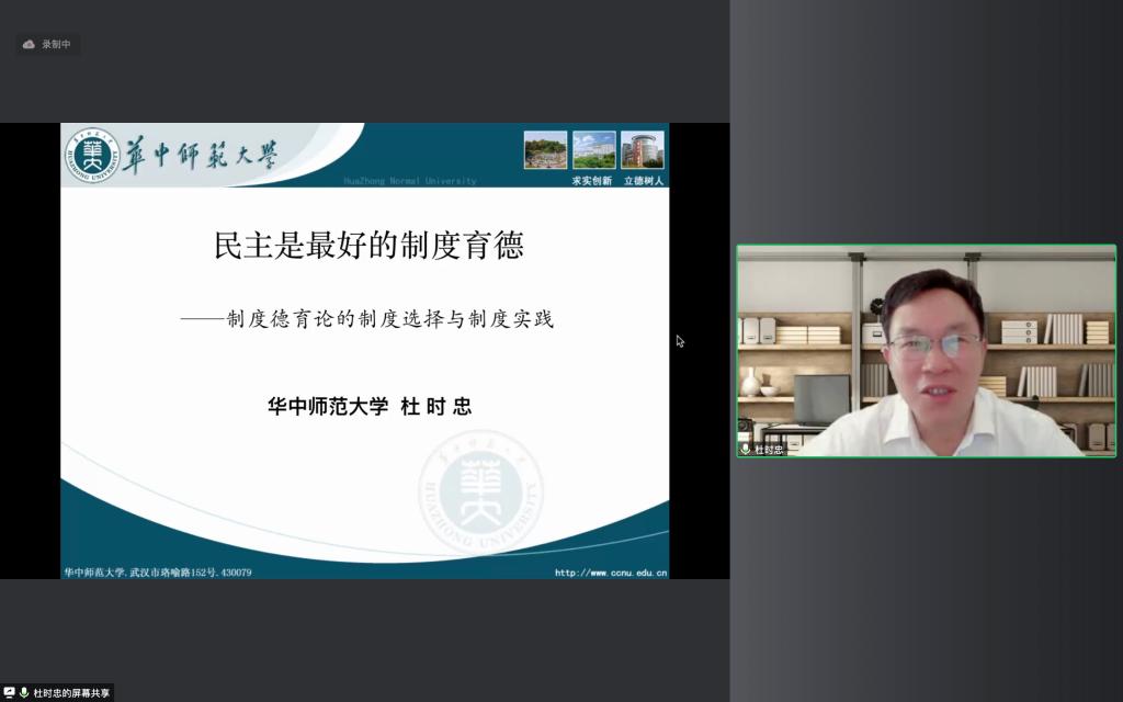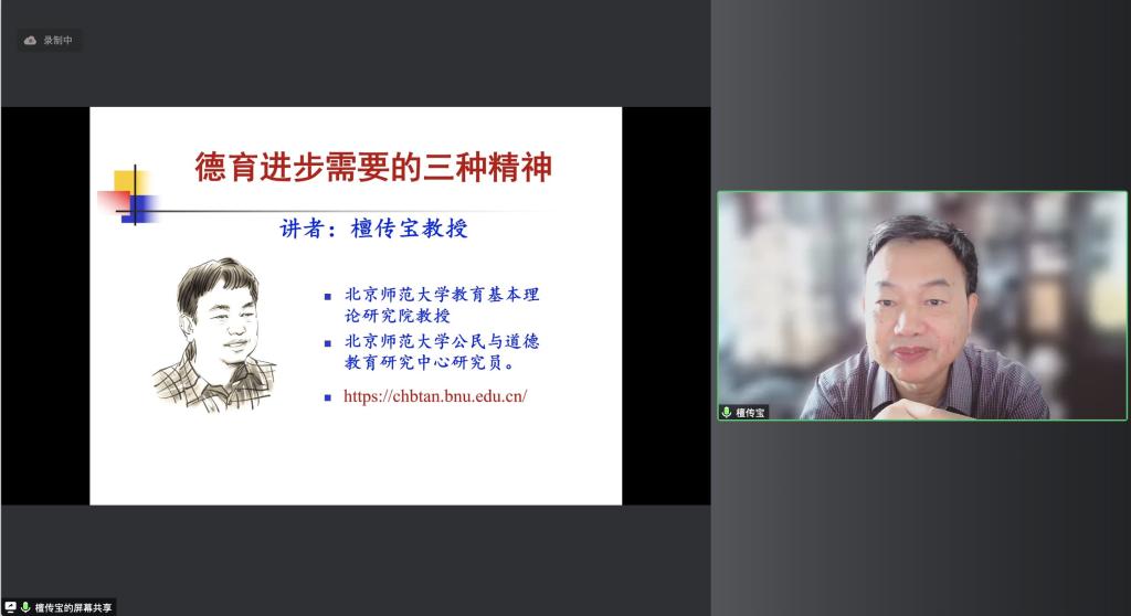 2022年7月1日,“新时期学校德育发展路向”研讨会以线上形式顺利召开。本次研讨会由华中师范大学教育学院、华中师范大学道德教育研究所、湖北省学校德育研究中心联合主办。华中师范大学教育学院院长雷万鹏教授应邀出席,北京师范大学檀传宝教授、南京师范大学冯建军教授、华中师范大学杜时忠教授、南京师范大学孙彩平教授、北京师范大学班建武教授和华中师范大学程红艳教授做主题汇报,全国各地的德育理论和实践领域的学者同仁在线参与交流。研讨会由华中科技大学刘长海教授主持。