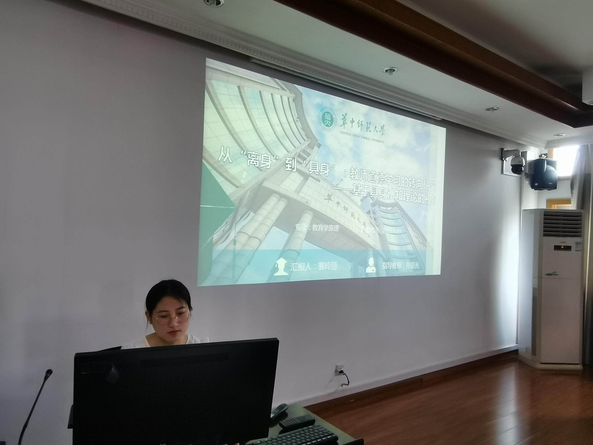 针对裴玲丽的开题报告,程红艳教授提问:具身认知理论在研究中提供了一种怎样的独特视角?把身体带入教师道德学习的意义和独特性是什么?解决的核心问题是什么?关键问题和理论的联系又体现在哪?张添翼副教授建议把具身认知理论作为一个视角,如具身认知视域下的教师道德学习的反思与改进。另外还要解释说明教师道德学习的具身机制是什么。卢旭副教授指出:要考虑研究的操作性,即怎么研究具身性。