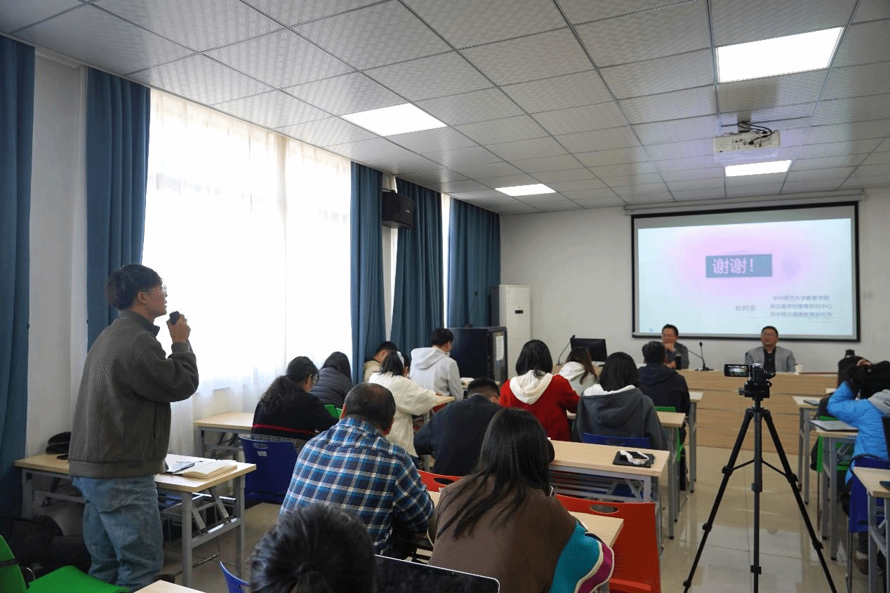 在交流环节,在场师生围绕“在我们国家的文化传统背景下,制度德育会遇到哪些理论和实践上的难题?”“制度德育的边界感在哪里?”“外向内推这种模式是否会使社会德育被制度裹挟,制度又如何应对?”等问题与杜时忠教授展开了热烈、深入的交流。杜教授逐一进行解答,并鼓励大家在会后就相关问题进行更加严谨细致的研究。