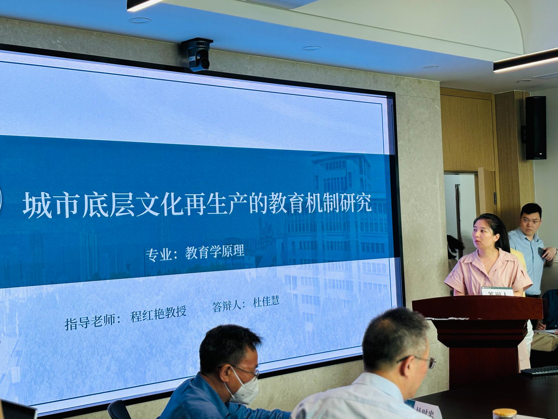杜佳慧的论文题目为《城市底层文化再生产的教育机制研究》,她分别从问题的提出、研究思路与方法、研究内容与发现及研究创新与不足四个方面进行陈述。答辩委员会认为,该研究选题具有重要的理论价值和现实意义。以文化再生产理论和文化社会学为理论依据,运用混合研究方法,建构“结构-文化-行动”理论分析框架,提出文化图式这一理论假设,发现城市底层学业不佳学生的学习动机与学业期望是个体与区域、学校、家庭在互动过程中产生的结果,揭示了城市底层文化再生产的教育机制,提出了相应的破解策略。论文观点明确,思路清晰,材料丰富,方法得当,表述规范。