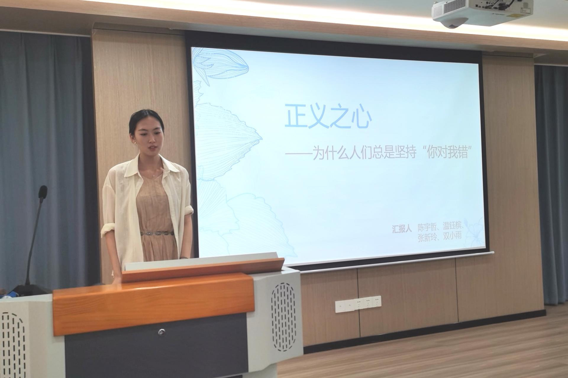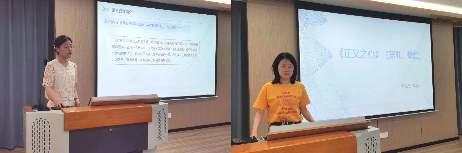硕士生陈宇哲、温钰槟、张新玲和双小雨围绕道德心理学的三大原则对对《正义之心》这本书进行了分享。