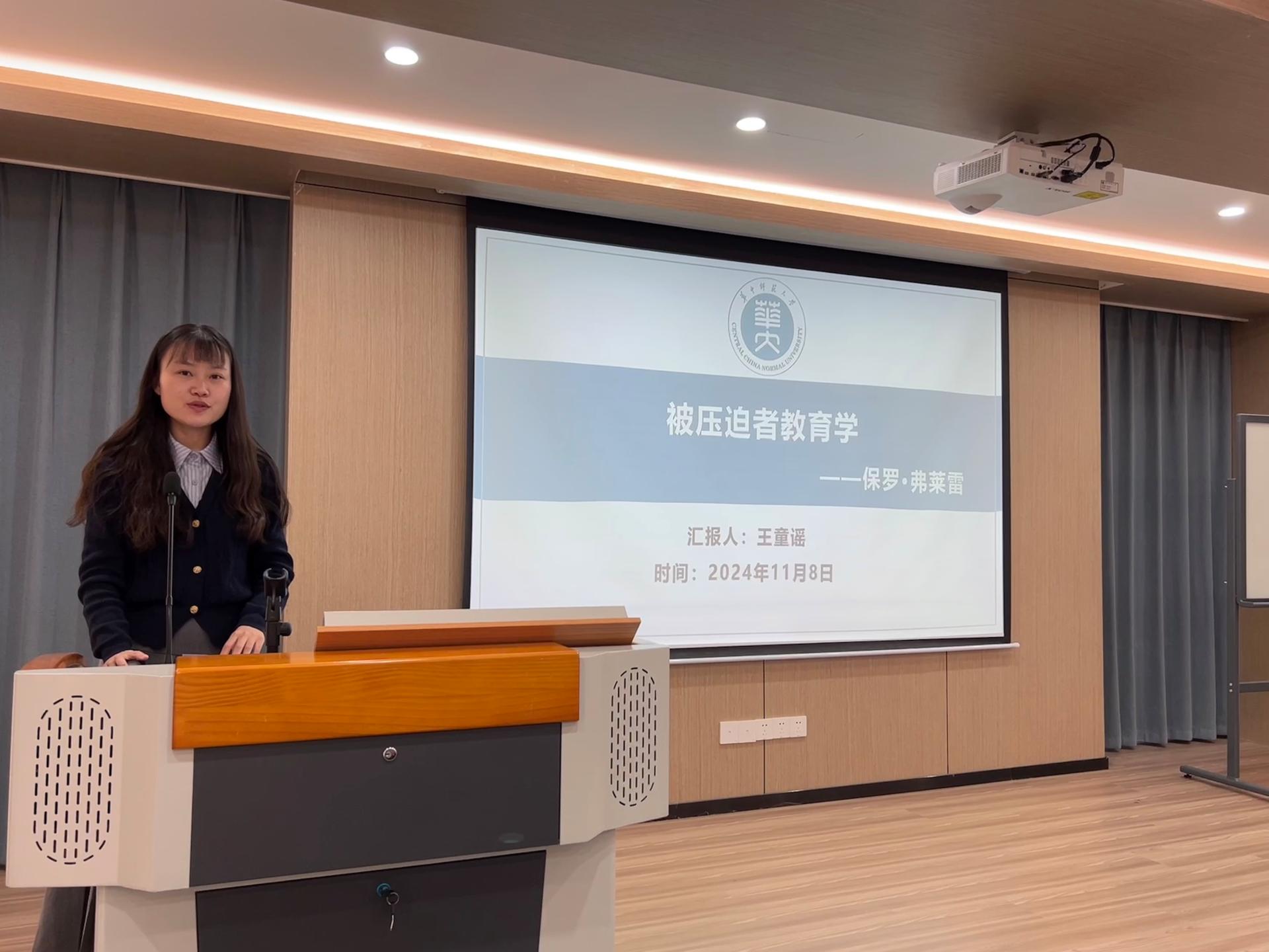 本期沙龙共有两项议程。一是博士生王童谣就《被压迫者教育学》一书进行读书分享;二是交流讨论环节。