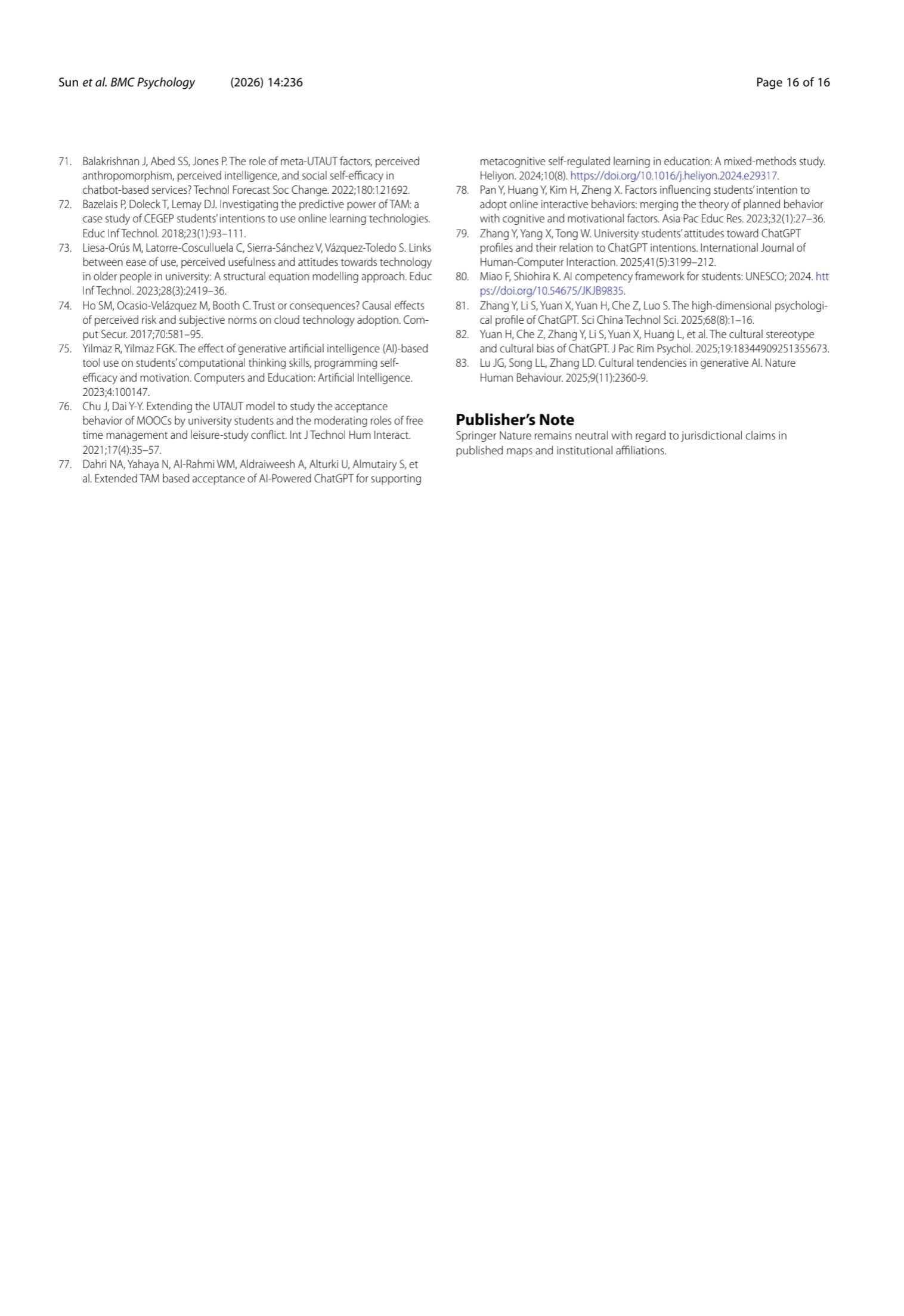 Keywords Generative artificial intelligence, AI literacy, Technology acceptance, Unified Theory of Acceptance and Use of Technology extension, Higher education transformation, Structural equation modeling