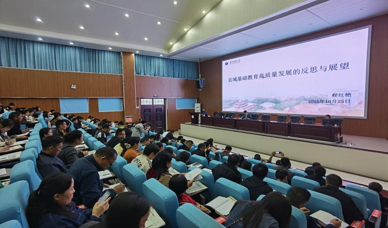 2025年10月25日,以“价值观引领下的区域教育质量提升”为主题的2025秋季学期德育研讨会在贵州省望谟县实验高中成功举行。本次研讨会由望谟县教育局主办,望谟县实验高中与贵州省刘秀祥省级名师工作室承办。华中师范大学道德教育研究所应邀派出专家团队出席并作学术报告,来自全县各中小学校长、德育副校长、优秀班主任及名师工作室成员等300余人参会。