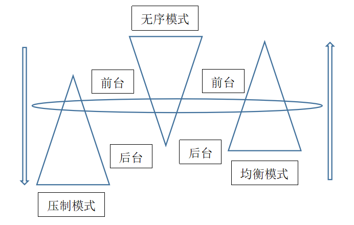 3. 均衡模式。均衡模式,是一种权力匹配的模式。在前台,学校管理者履行其基本职能,行使其基本权力,体现其强势者的强势地位。但同时给作为弱者的学生留有足够的后台行动空间。