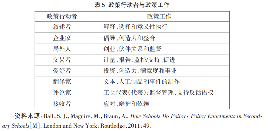 随后,斯提芬·鲍尔等人将个体与集体的意义建构过程,归纳概化为对政策文本非线性、不统一解读的“解释”(interpretation)与将政策转化为动态、可识别行动与实践的“翻译”(translation)两种分离但又相互交织的“制定”行为,[45]而后研究者多聚焦于对行动者“解释”与“翻译”政策行为加以剖释。