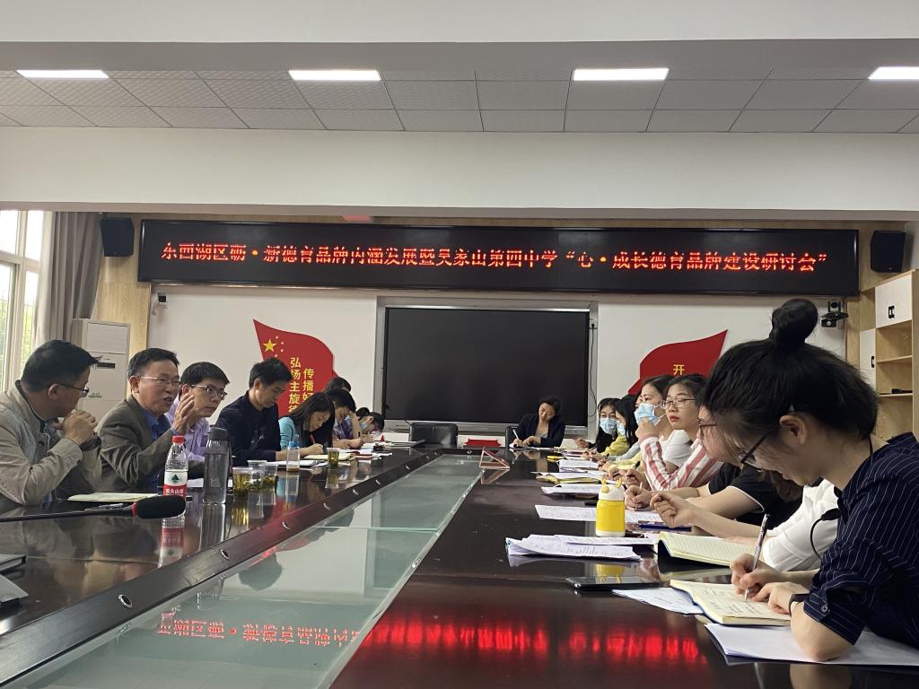 在研讨交流环节,吴家山四中校长王斗私对德育所各位专家的到来表示了热烈欢迎,比较详细地介绍了学校德育工作的定位、目标、愿景。学校团委书记石珊珊、政教主任周从权分别就“心•成长”德育品牌打造和学校德育工作进行了汇报。李伟副教授指出,四中的德育工作坊已经有12年的成长,积累了较好的经验和影响力,当前学校德育常规工作和“心•成长”德育品牌两者之间应该要加强融合,为学校整体提升贡献力量。杜时忠教授肯定了学校在德育领域的探索努力,指出四中工作效率高,领导事业心强,教师队伍朝气蓬勃。今后的工作重点,是要全面调查学生各个年级、各个学期的成长需求,根据学生的成长需要来调整学校的月度德育工作计划,并把常规性的德育工作建设成为校本德育课程。
