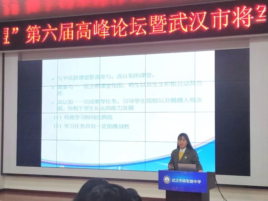 华中师范大学德育所程红艳教授做了主题为《公平优质课堂的内涵与要素》的学术报告,指出公平优质的课堂教学是要让班级内的每个学生都能够公平参与到课堂之中,让每个学生都能够实现自身的优质发展,其要素在于“全员参与” “发展性教学”“差异化教学”和“多样化教学”。