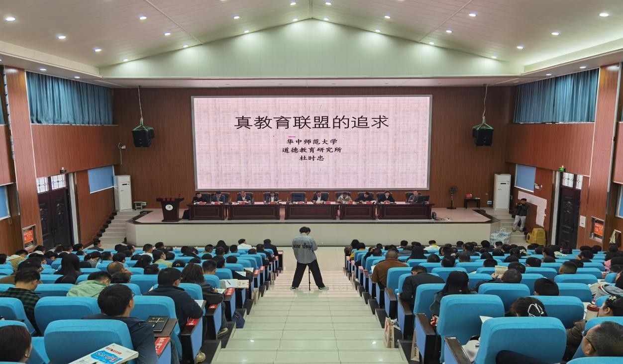 在学术报告环节,华中师范大学道德教育研究所杜时忠教授以《真教育联盟的追求》为题给研讨会作了主题讲座。他旁征博引、妙语连珠,从“真教育联盟成立宗旨”,“真教育联盟发展历程”,“真教育联盟基本主张”三大方面,深入剖析当前德育教育时弊,揭示真教育育人规律,其所新创的“真教育联盟”,更显独到的教育情怀与育人价值引领,其精彩的发言引发了与会老师们的强烈情感共鸣和思想碰撞。